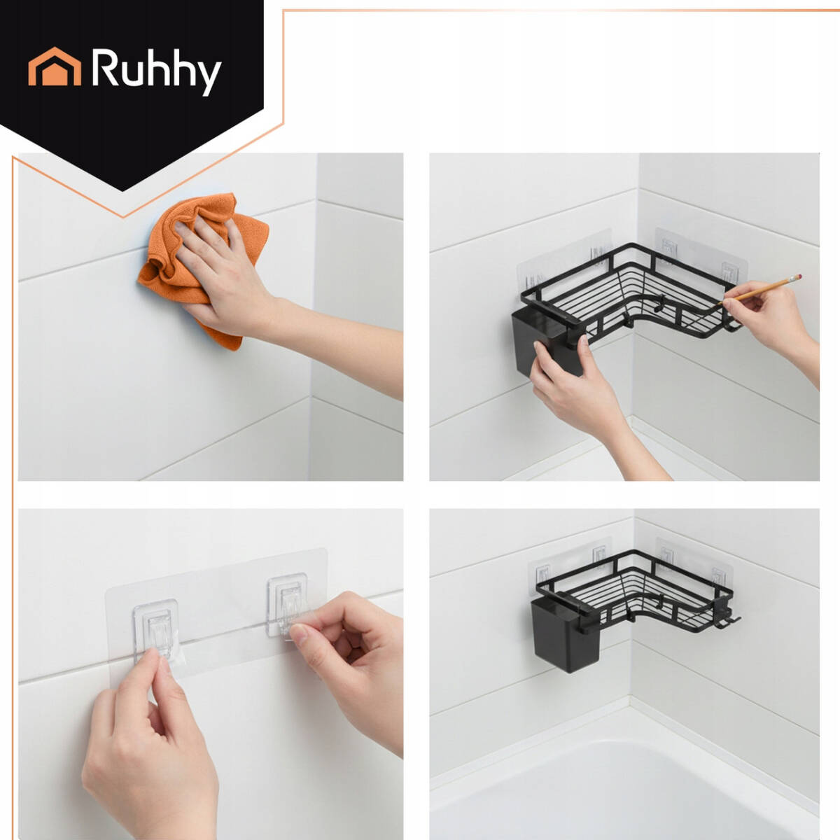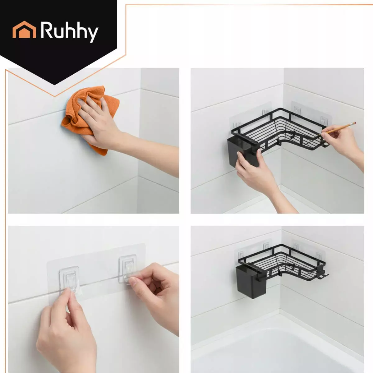 Кутові полиці для ванної Ruhhy (набір 2 шт, без свердління) — це простий спосіб навести порядок у душі та ванній, не псуючи плитку й не витрачаючи час на складний монтаж.