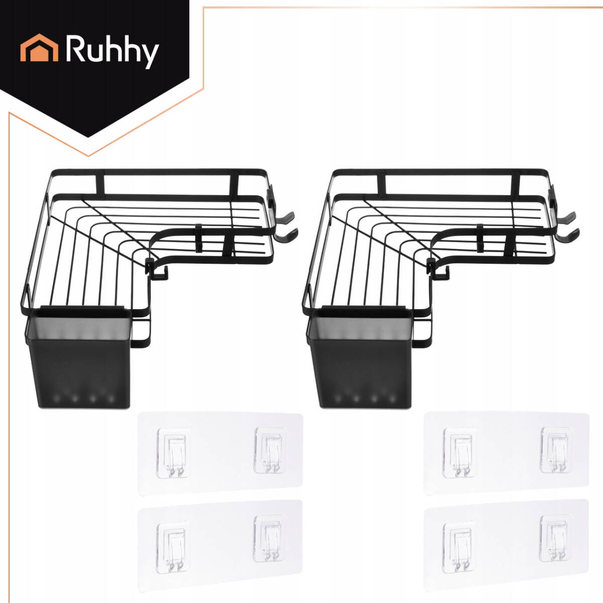 Кутові полиці для ванної Ruhhy (набір 2 шт) — це практичне рішення для організації простору в душі та ванній кімнаті без свердління та пилу. Міцна сталева конструкція з порошковим фарбуванням, сучасний loft-дизайн у чорному матовому кольорі та простий монтаж на самоклейних тримачах роблять комплект зручним як для власної квартири, так і для орендованого житла.
