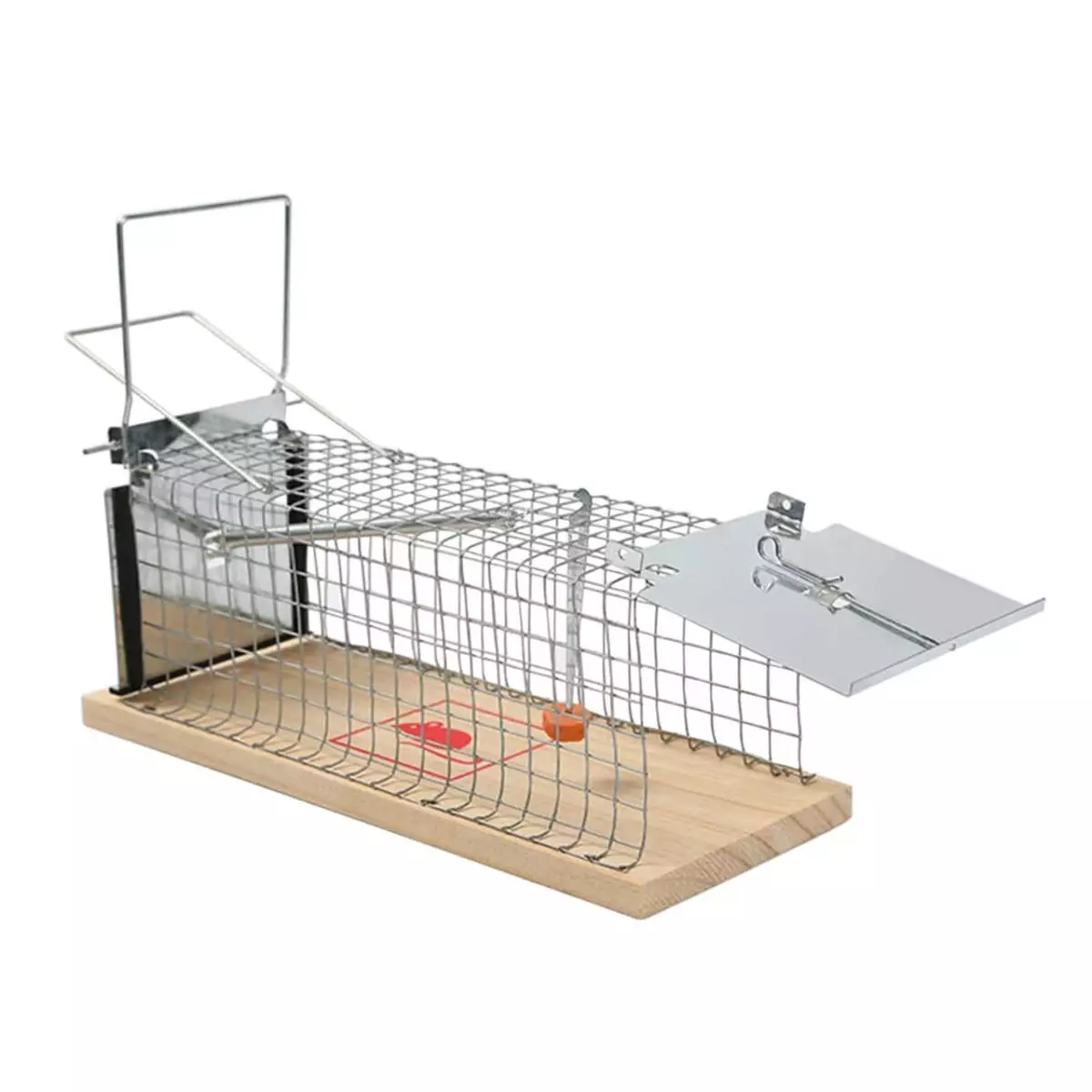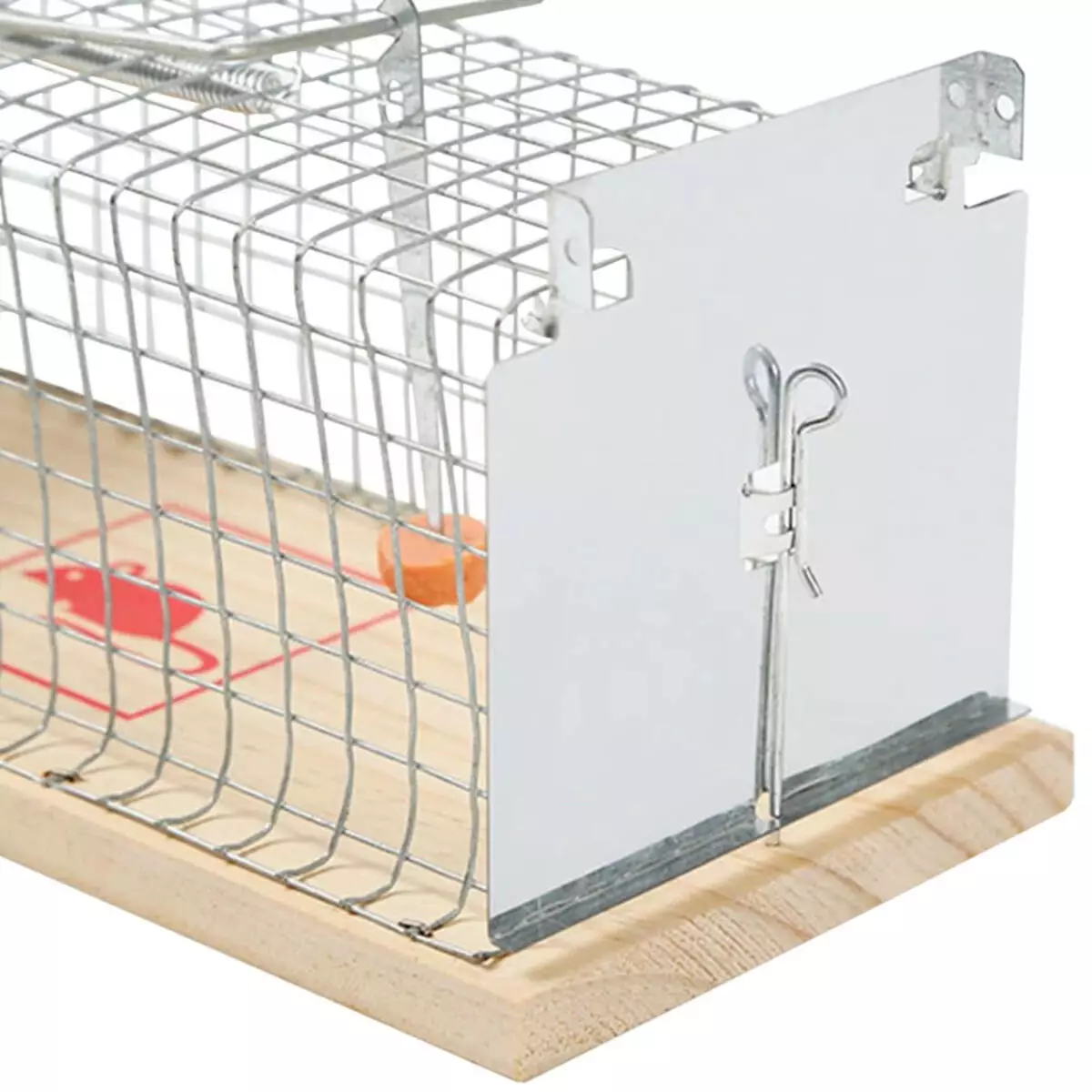 - Для встановлення пастки достатньо помістити всередину приманку (шматочок хліба, сиру або горіха) та зафіксувати дверцята.