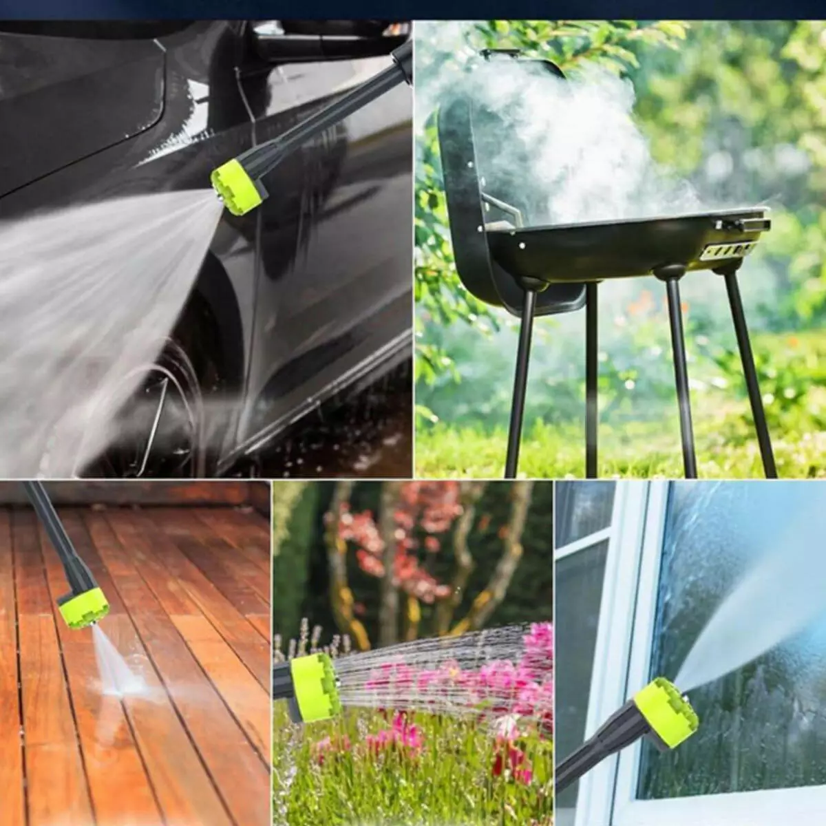 Так, потужний струмінь води легко видаляє бруд із плитки, парканів, садових меблів.