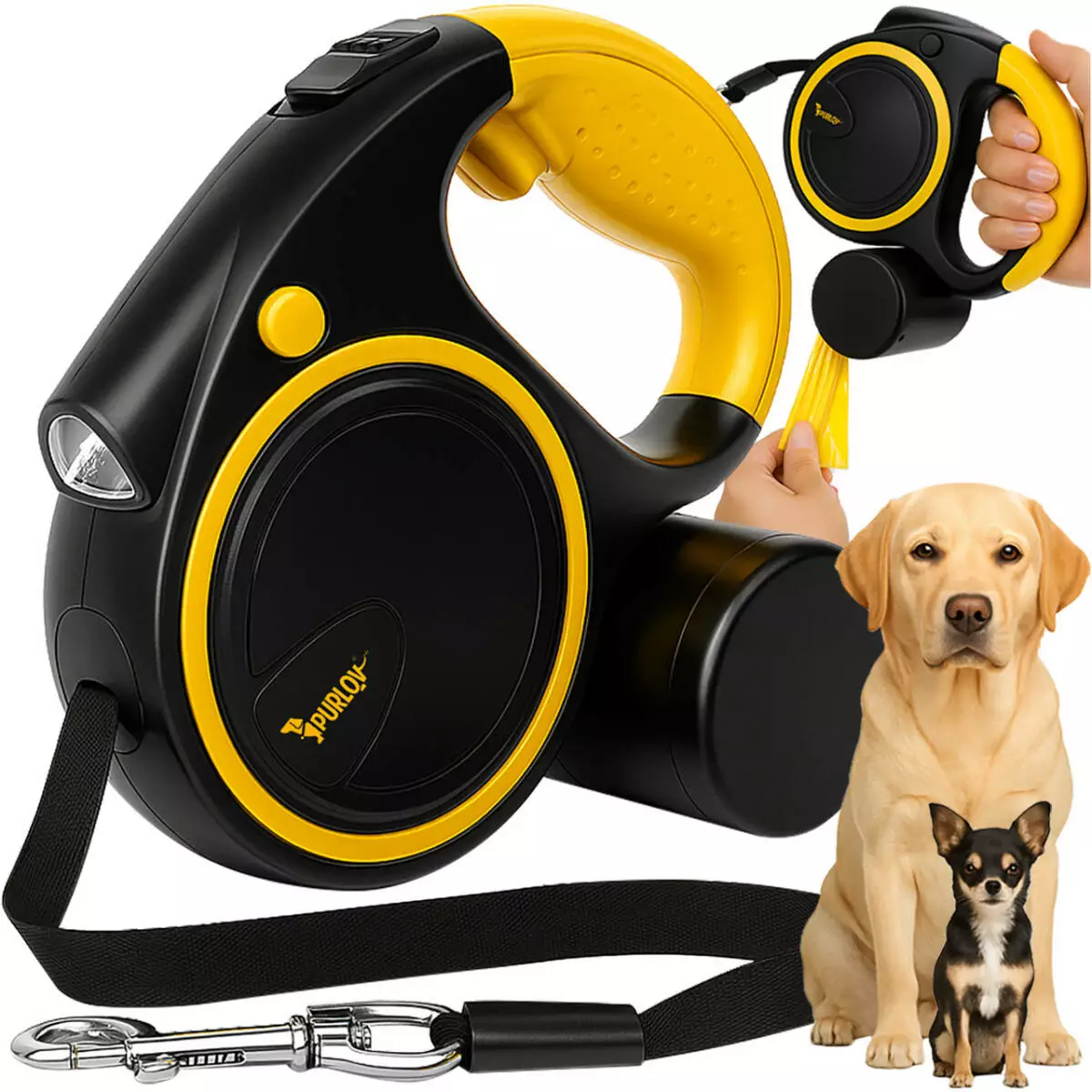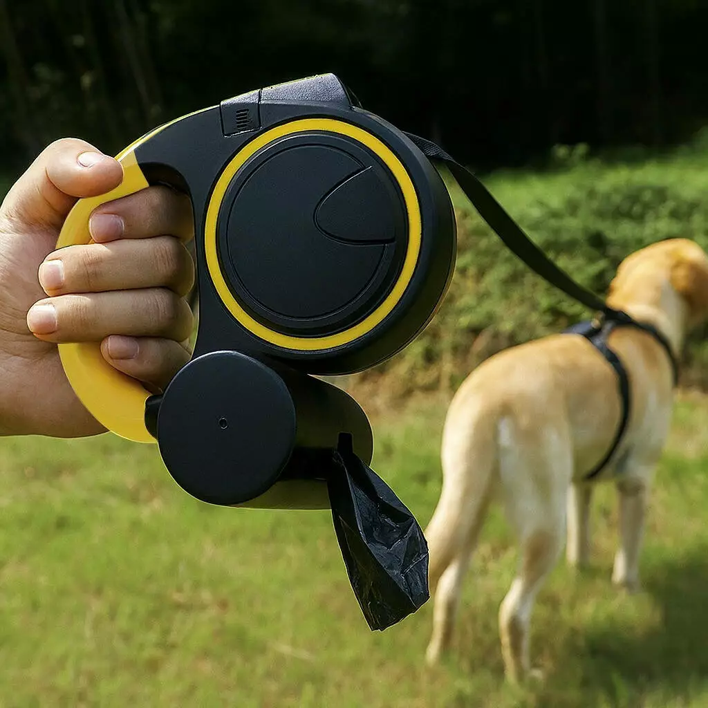 Автоматичний повідок-рулетка Purlov з довжиною стрічки 5 м поєднує комфорт, безпеку та повний контроль над собакою вагою 10–25 кг. Міцна стрічка, ергономічна ручка, гальмо STOP, вбудований ліхтарик LED та дозатор пакетів роблять прогулянки зручними як удень, так і після заходу сонця.