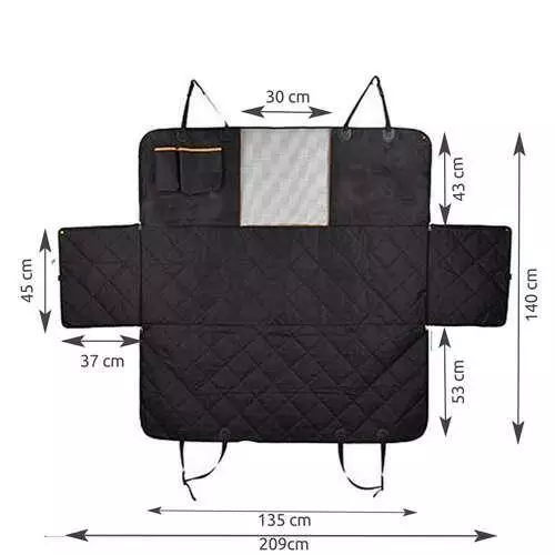 ЛЕГКЕ ВСТАНОВЛЕННЯ І БЕЗПЕКА - просто розстеліть килимок на задньому сидінні автомобіля і прикріпіть його за допомогою гачків до підголівників і бічних ручок; спеціальні прорізи для ременя дають змогу прикріпити тварину з метою безпеки.