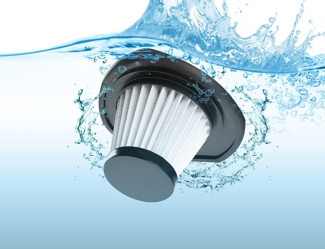 ПОДВІЙНА СИСТЕМА ФІЛЬТРАЦІЇ - HEPA-фільтр усередині запобігає винесенню найдрібнішого пилу назовні, дезінфікує повітря, що проходить через нього, а також додатково захищає двигун пристрою від пошкоджень. Завдяки використанню фільтра пилосос не втрачає потужності і потужність всмоктування залишається постійною. Його можна легко зняти і промити під проточною водою.