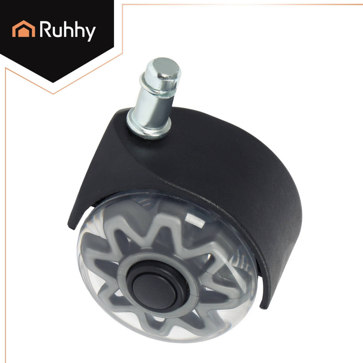 Коліщата для офісного крісла RUHHY 2,5" забезпечують тихий хід (менше 25 дБ), плавний оберт на 360° та надійний захист підлоги без додаткових матів. Підшипники зі сталі високовуглецевої марки і м’який поліуретановий біговий шар гарантують довговічність і комфорт щодня. Монтаж займає менше хвилини: витягніть старі — вставте нові.