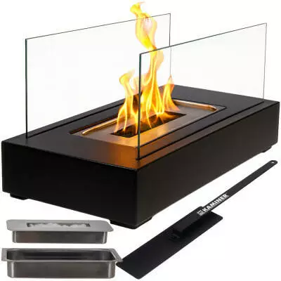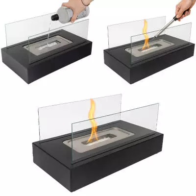 Біокамін KAMINER 26301 настільний, бездимний, на біоетанолі — скляні стінки, 250 мл, до 60 хв горіння 35×18×17 см