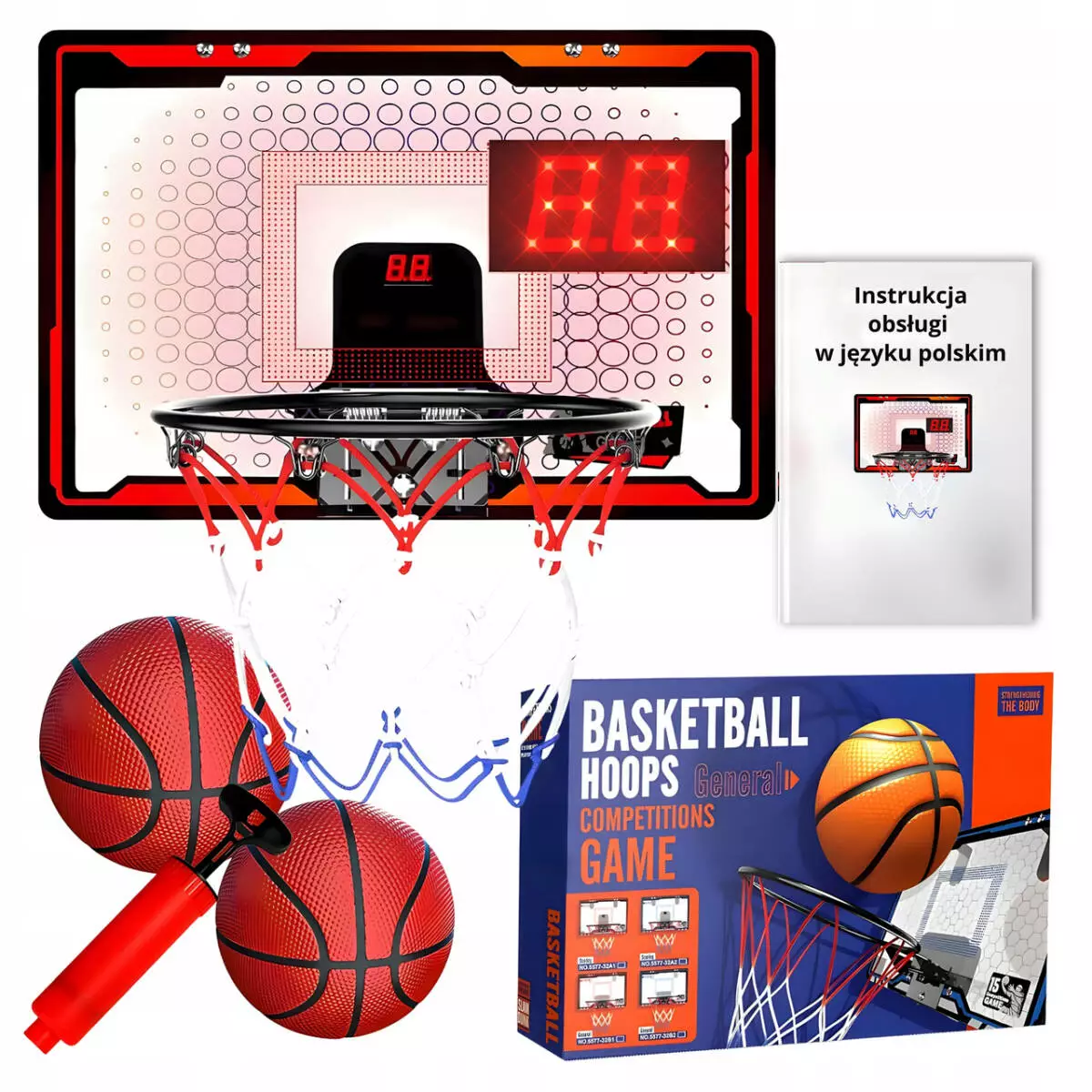 Дитяче баскетбольне кільце з сіткою, м'ячами для дому - зі звуковими ефектами та LCD табло