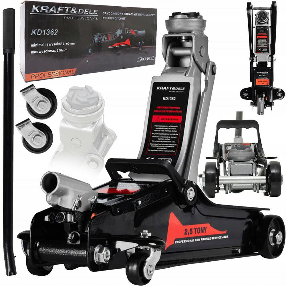 Домкрат автомобільний гідравлічний 2,5 Т – це надійний інструмент для підняття легкових автомобілів. Завдяки компактній конструкції, сталевим колесам та гідравлічному приводу, модель KD1362 ідеально підходить як для використання в майстерні, так і для мобільного сервісу або у багажнику авто.