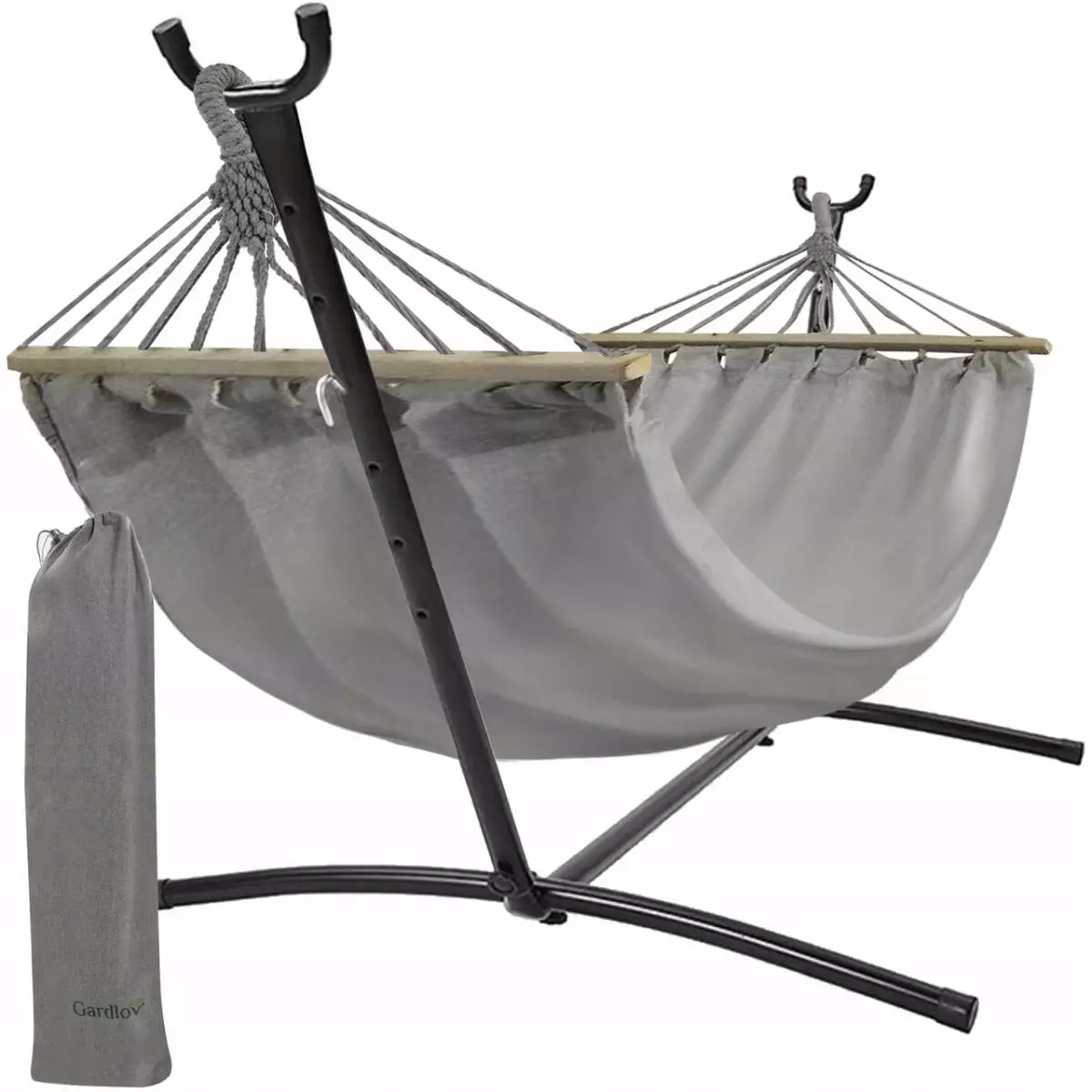 Двомісний садовий гамак на каркасі XXL з дерев'яними перекладинами – до 250 кг Gardlov