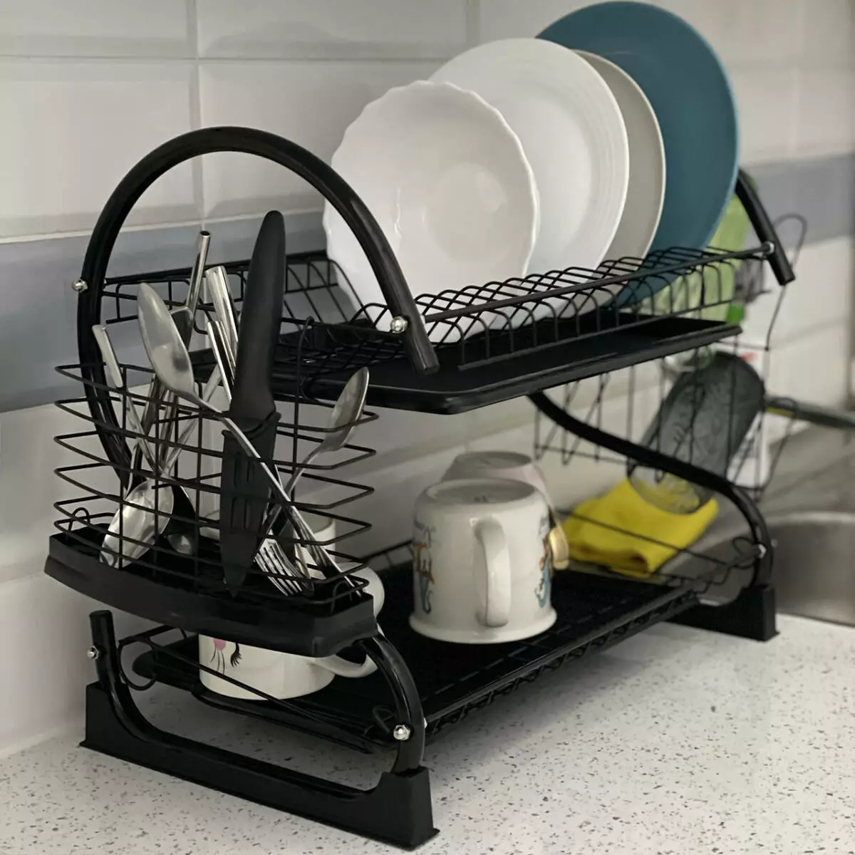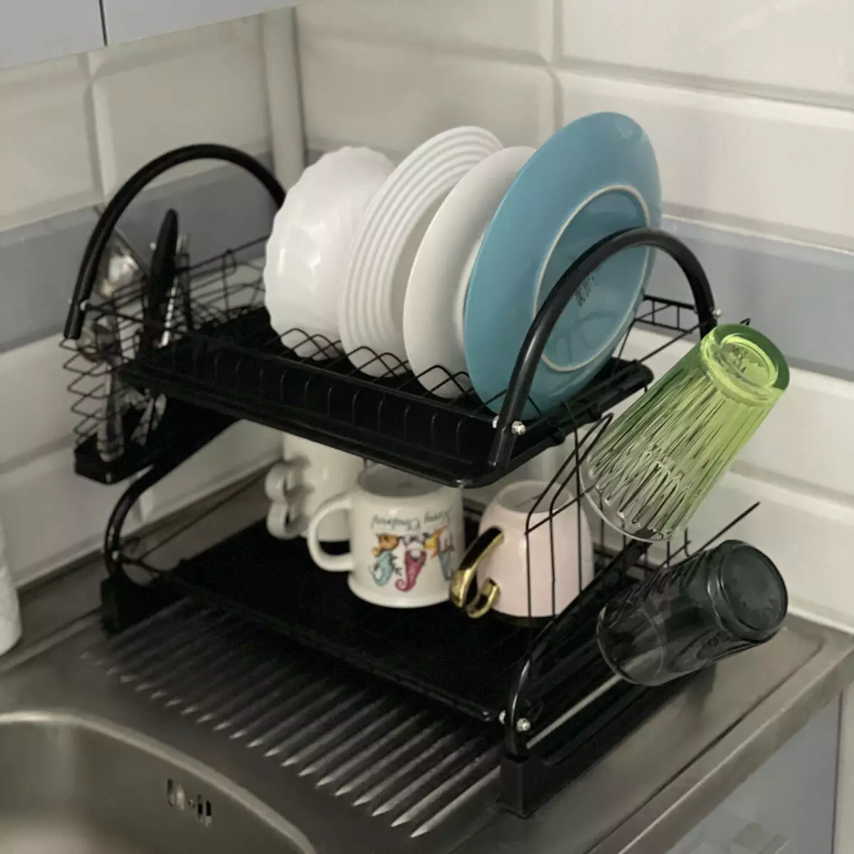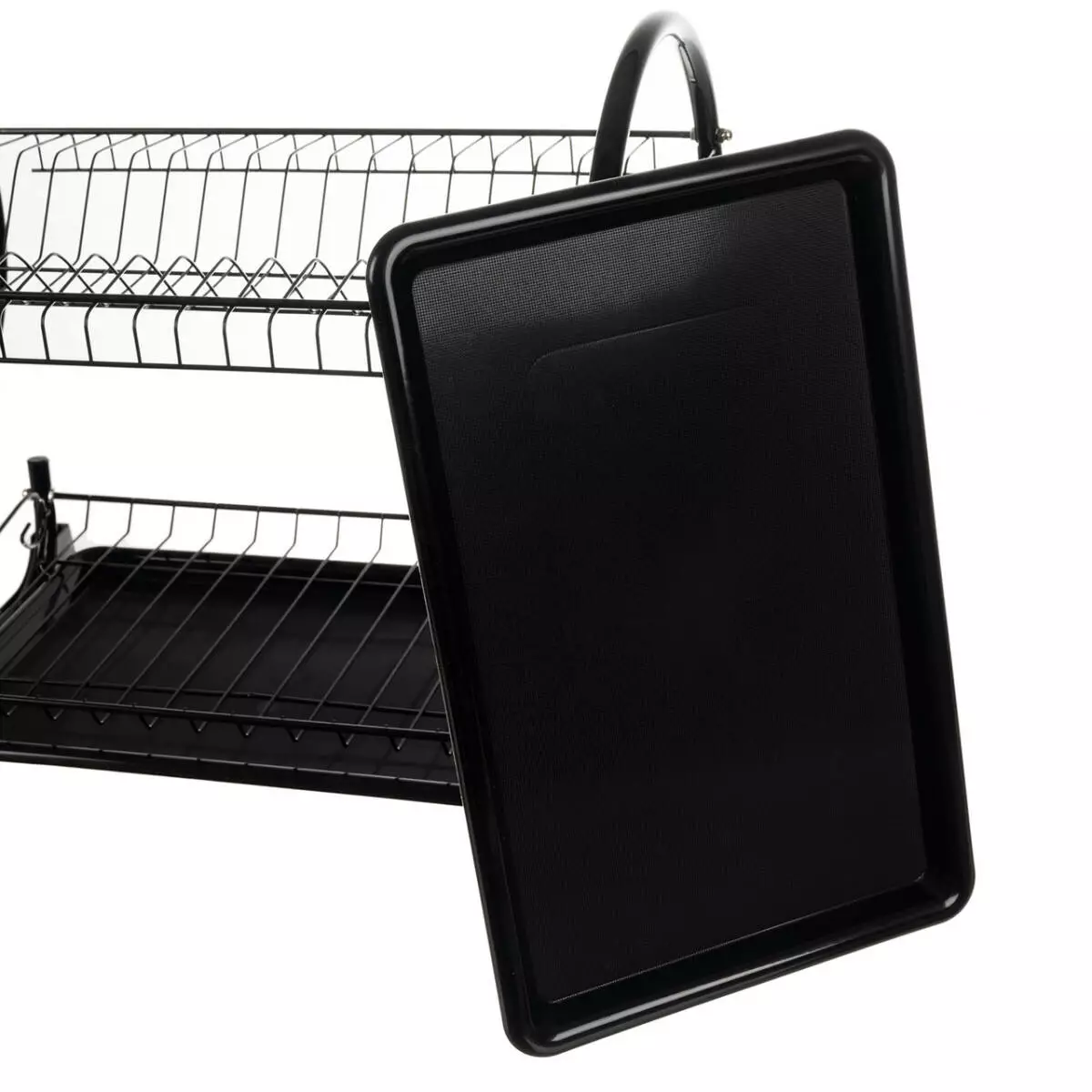 Міцна конструкція та сучасний дизайн: Сушарка виготовлена з міцного заліза з чорним порошковим покриттям, яке захищає від корозії та надає сучасний вигляд. Елегантний чорний колір ідеально підходить для різних стилів кухні, додаючи індустріального шарму.