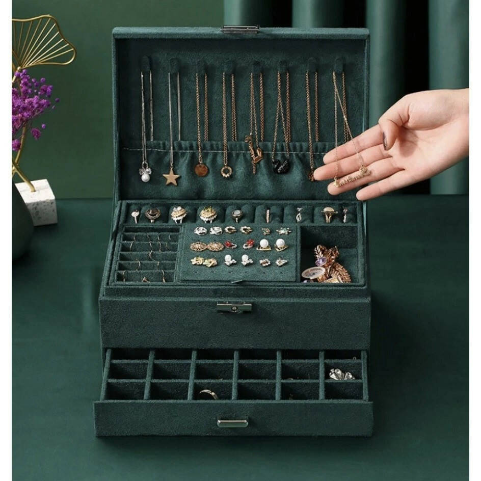 Елегантна зелена скринька для ювелірних виробів Soulima, з замком, багатофункціональна організація прикрас