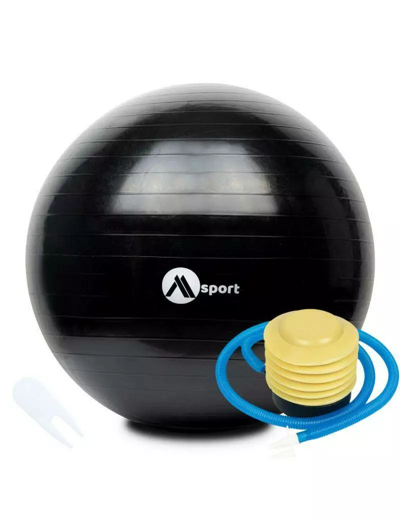 Гімнастичний м’яч 65 см чорний із насосом — для фітнесу, йоги, пілатесу та реабілітації MSport
