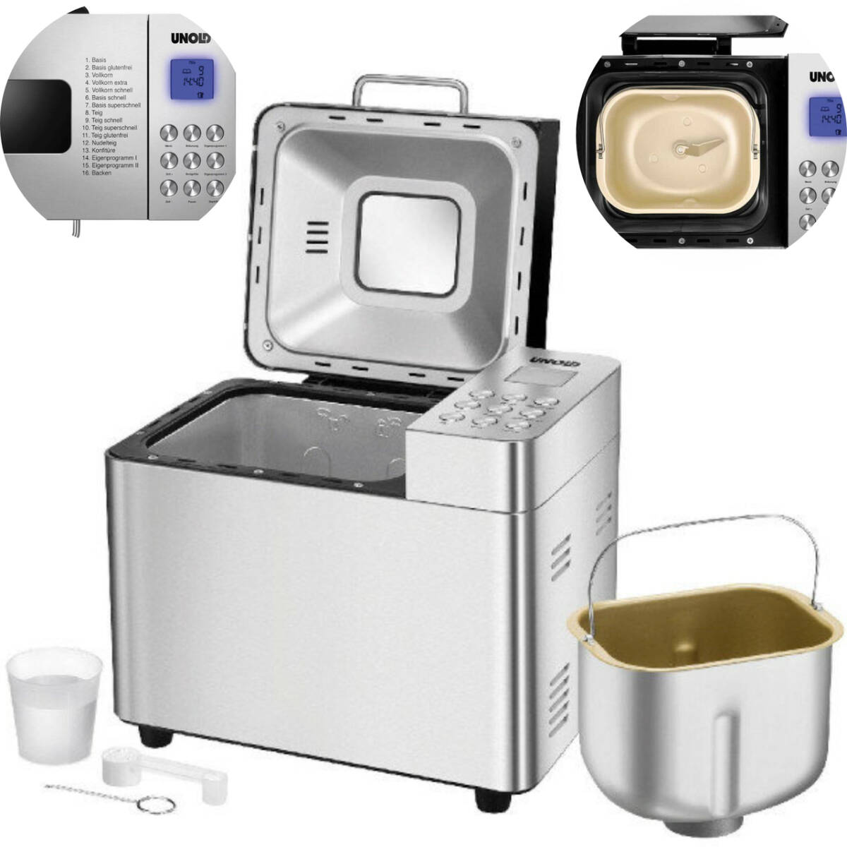 З домашньою хлібопічкою UNOLD 68456 ви зможете самостійно готувати смачний хліб зі скоринкою. Серед 16 збережених програм ви обов'язково виберете ту, яка дасть змогу приготувати смачний хліб. Ви можете приготувати цільнозерновий хліб або тісто. Під час випічки ви можете додатково додати інші сировинні матеріали, наприклад, насіння або сухофрукти.