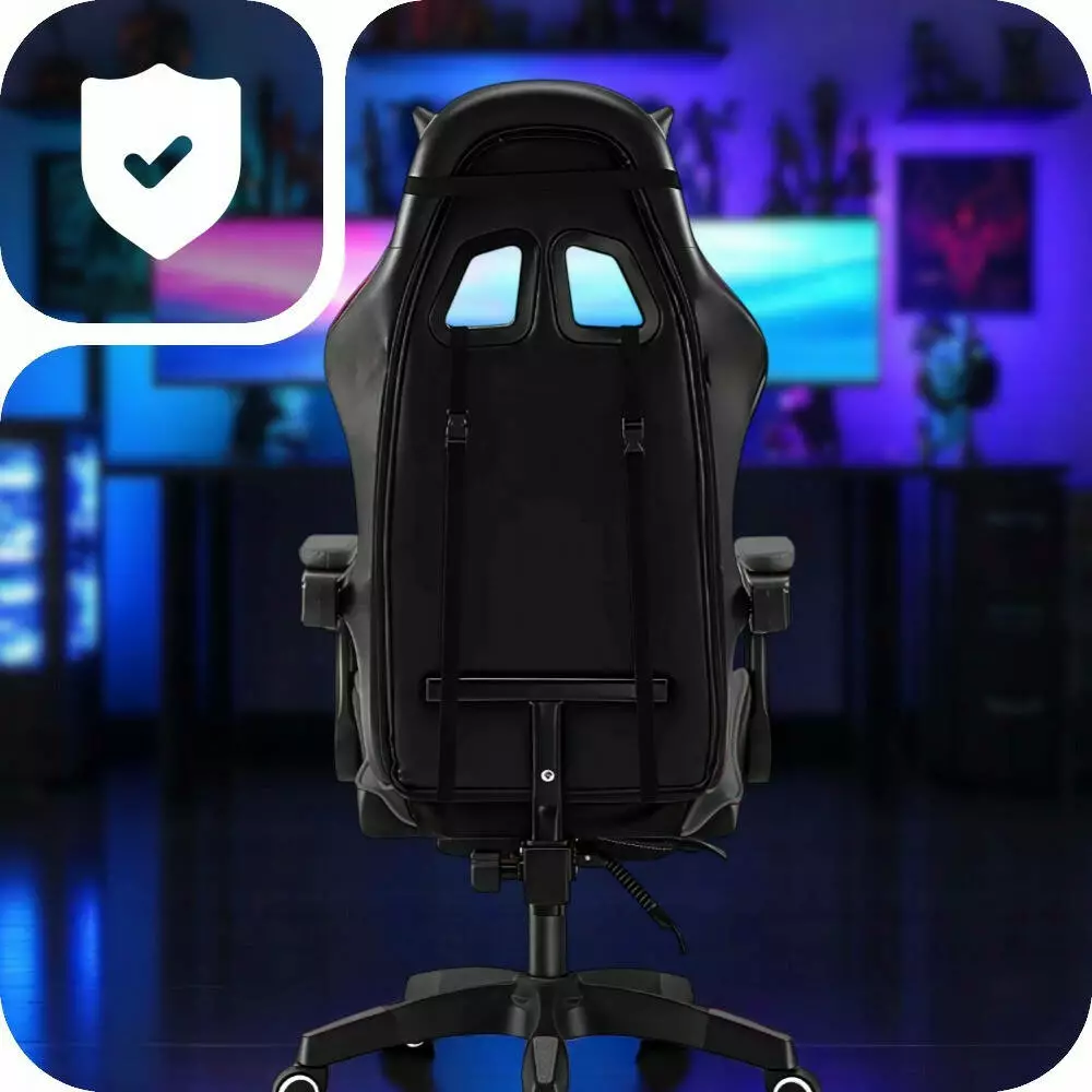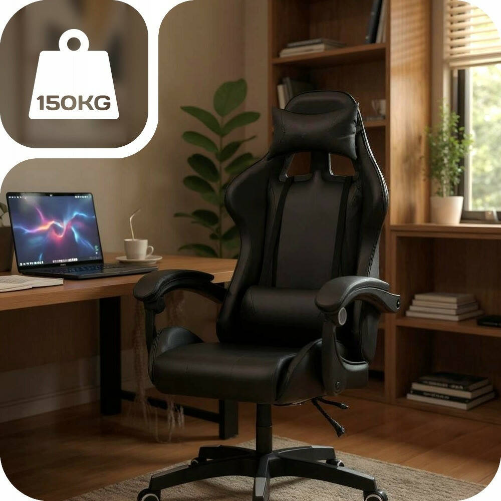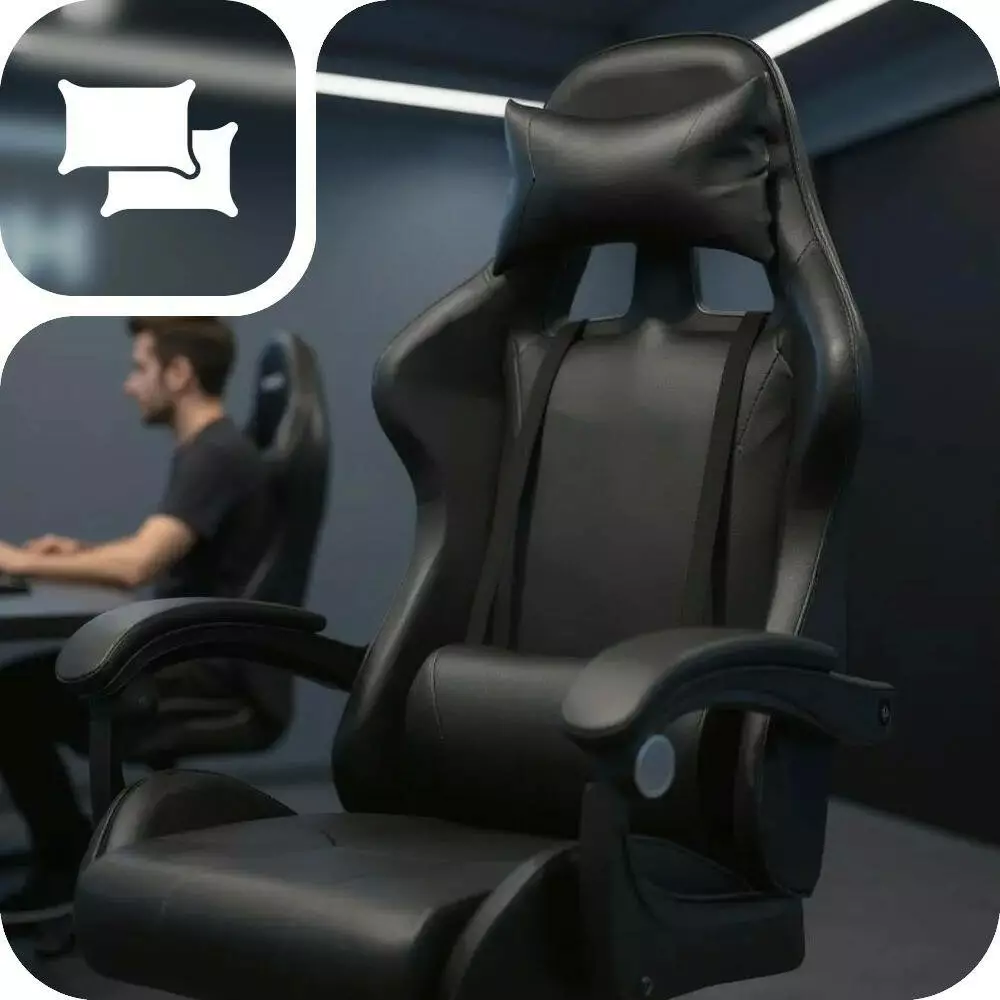 ІГРОВЕ КРІСЛО З ЕКОШКІРИ З ПІДГОЛІВНИКОМ І ПІДТРИМКОЮ СПИНИ