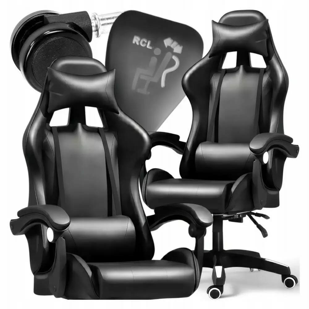Ігрове крісло з екокошкіри - Чорне, Крісло для геймерів, Регульоване ігрове RC-K-524