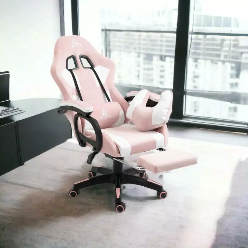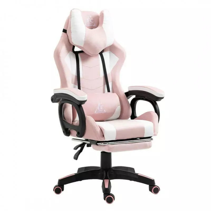 Ігрове крісло з підголівником, поперековою подушкою та підставкою для ніг KO23R(рожеве з білим)
