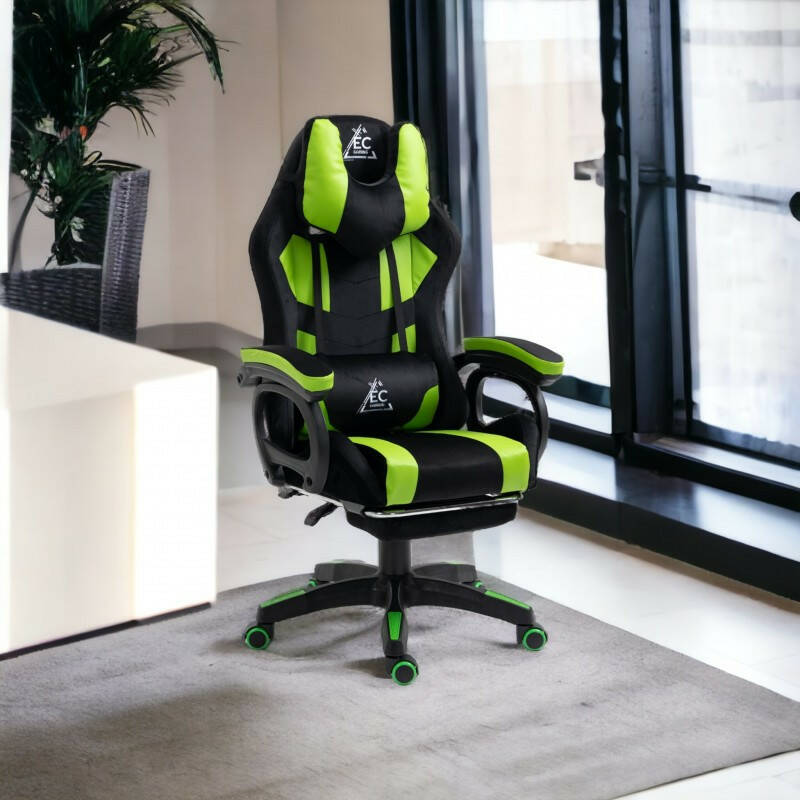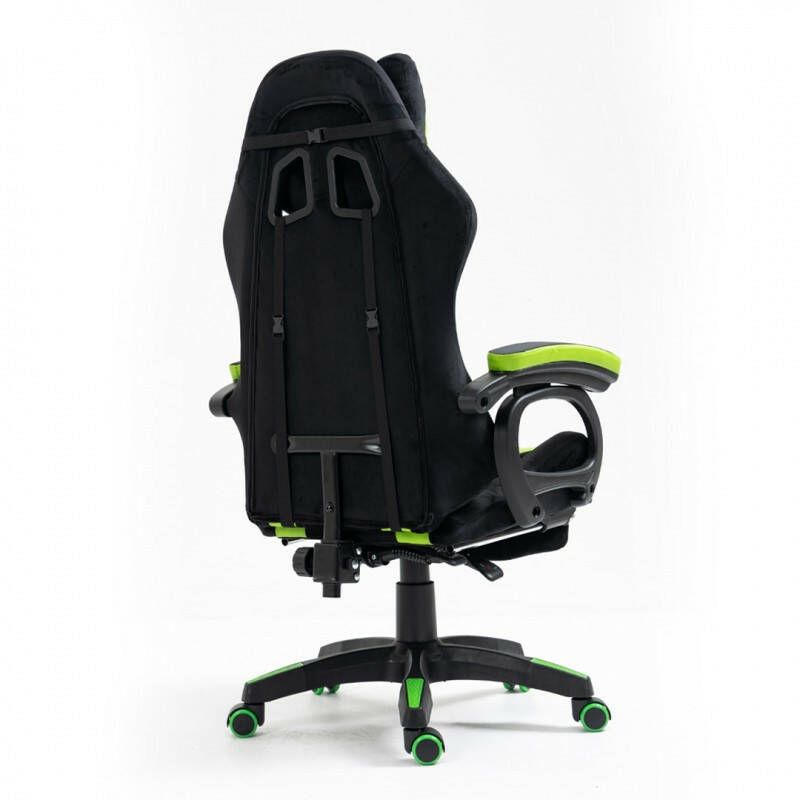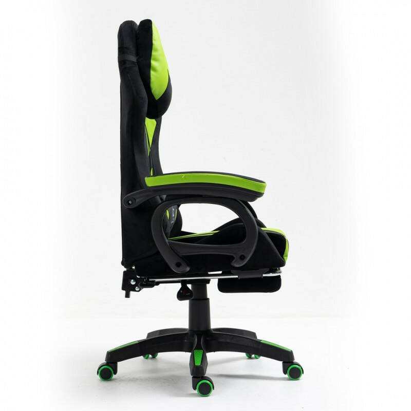Ігрове крісло з підголівником, поперековою подушкою та підставкою для ніг KO23ZIE (зелене з чорним)