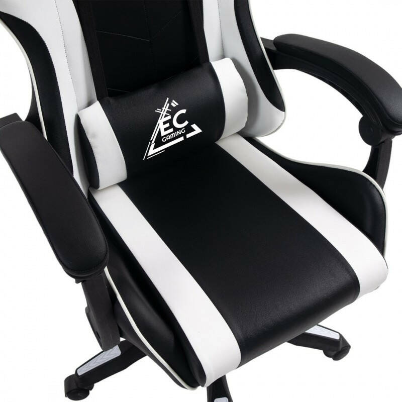 Ігрове крісло з підголівником, поперековою подушкою та підставкою для ніг KO24B (біле з чорним)
