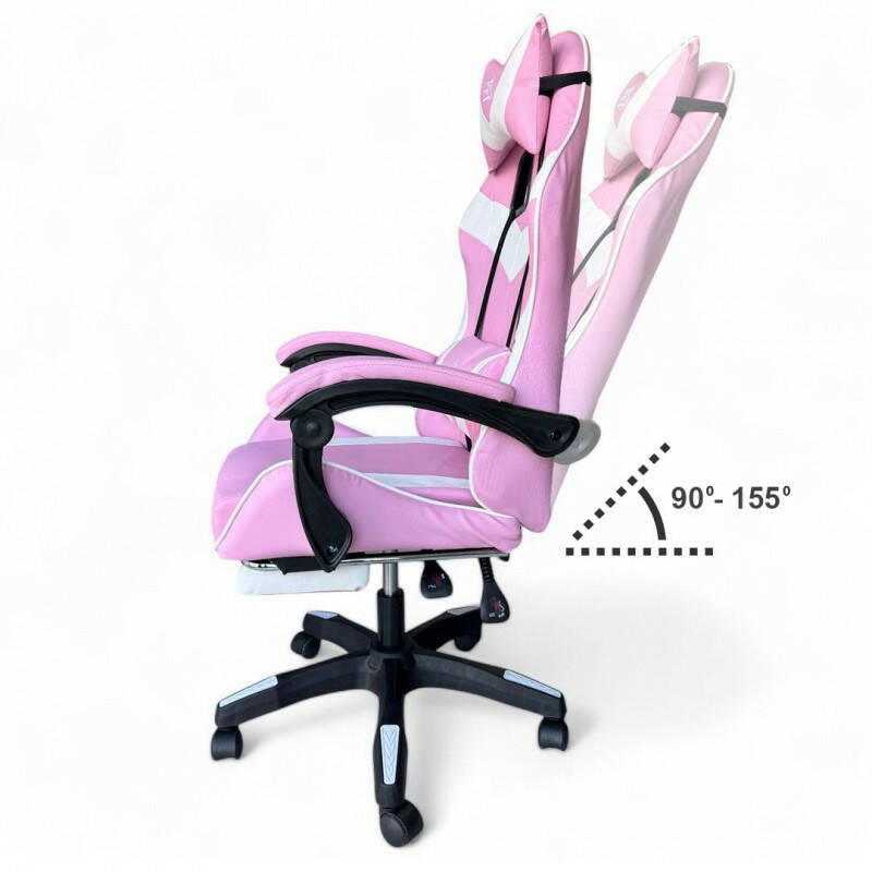 Ігрове крісло з підголівником, поперековою подушкою та підставкою для ніг KO24R (рожеве з білим)