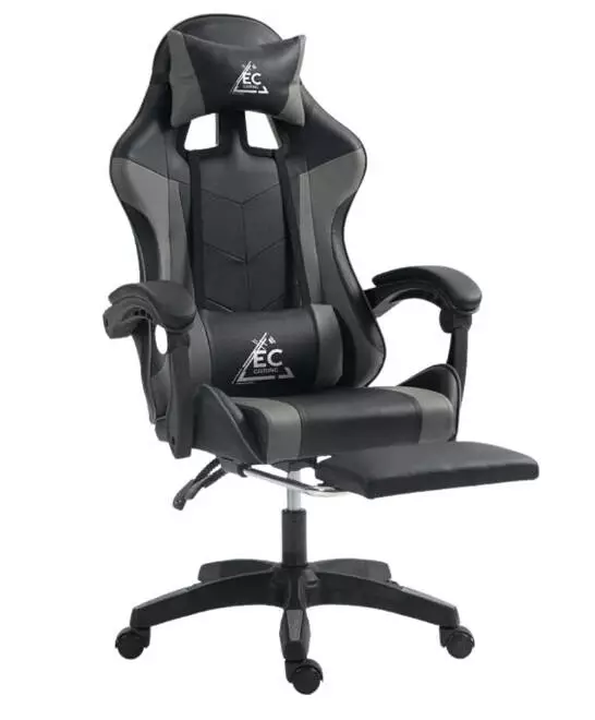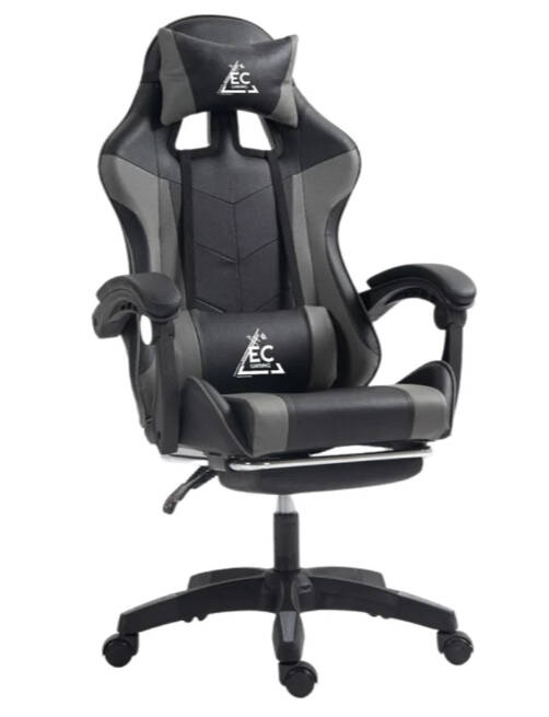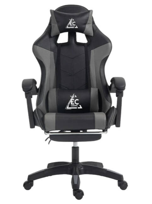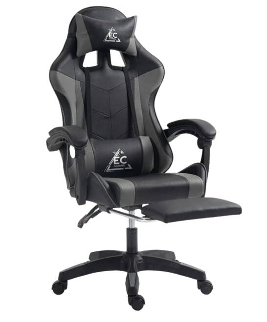 Ігрове крісло з підголівником, поперековою подушкою та підставкою для ніг KO24SZ (Чорно-сірий)