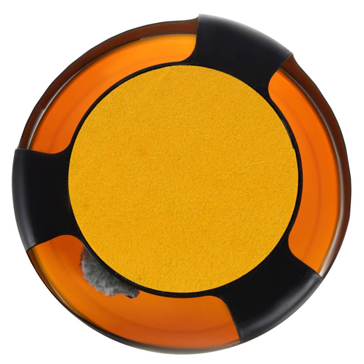 Він має круглу форму і 3 отвори. Отвори досить великі, щоб у них легко поміщалися котячі лапи будь-якого розміру. У центрі знаходиться імітація миші, яка при попаданні в неї лапою починає рухатися і обертається по периметру кола, заохочуючи кішку продовжувати гру.