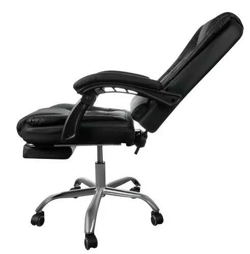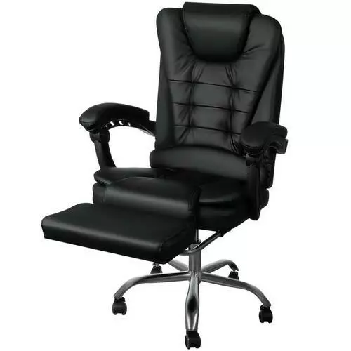 Офісне крісло, яке ідеально облягає сидячу фігуру, обтягнуте м'якою еко шкірою. Крім того, крісло має подвійний шар губки, що значно підвищує комфорт використання. Високий вбудований підголівник та відповідне профільування гарантують функціональність та підтримку голови, а широке сидіння дозволить працювати багато годин. Підлокітники м'які та зручні, що знижує біль у ліктях та навантаження на хребет.