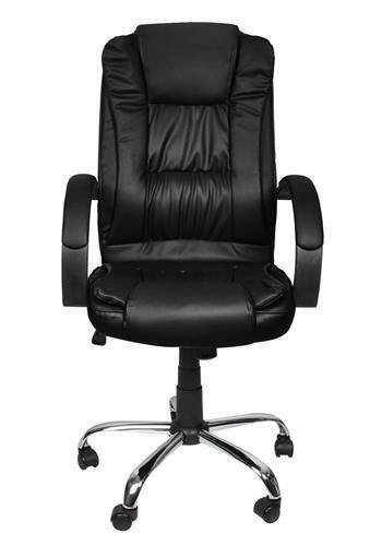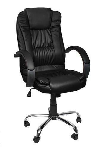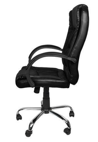 Офісне крісло, яке ідеально облягає сидячу фігуру, обтягнуте м'якою еко шкірою. Крім того, крісло має подвійний шар губки, що значно підвищує комфорт використання. Високий вбудований підголівник та відповідне профільування гарантують функціональність та підтримку голови, а широке сидіння дозволить працювати багато годин. Підлокітники м'які та зручні, що знижує біль у ліктях та навантаження на хребет.
