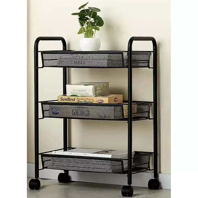 Цей стелаж ідеально підходить для використання на кухні, у ванній кімнаті чи офісі. Виготовлений з міцного заліза з порошковим покриттям, яке забезпечує захист від корозії та пошкоджень. Завдяки трьом рівням у вигляді кошиків, стелаж дозволяє зручно організувати та розмістити кухонні або інші аксесуари.