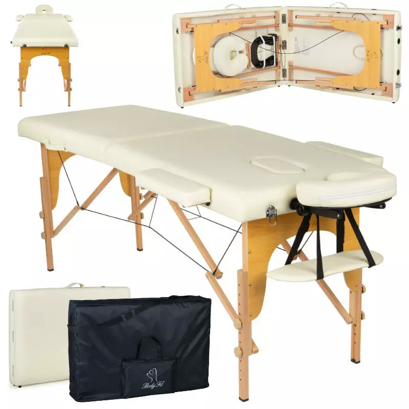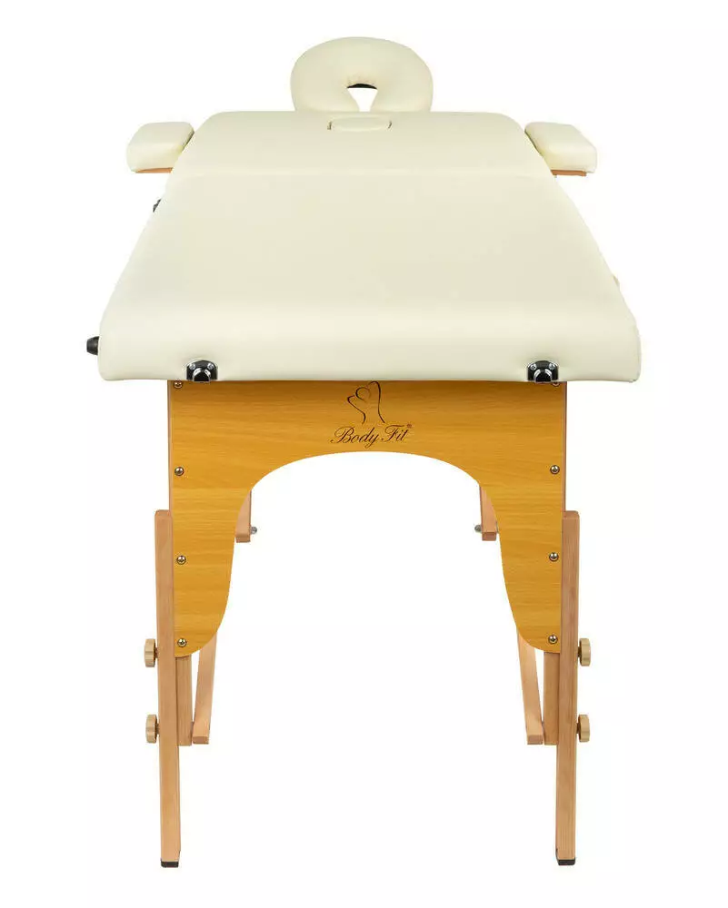 Масажний стіл BodyFit 2-секційний 60см дерев'яний, складний, з аксесуарами, кушетка - Польща Бежевий