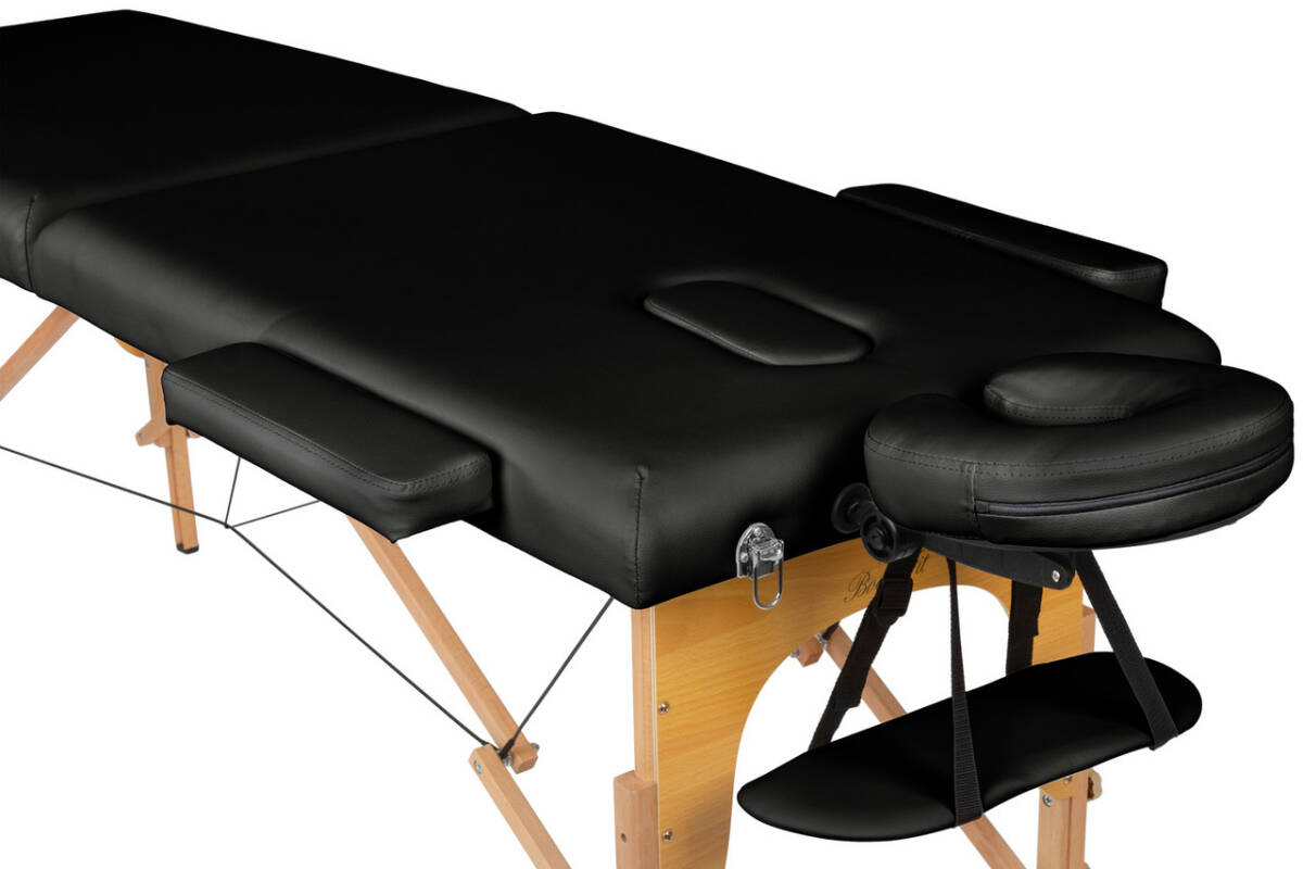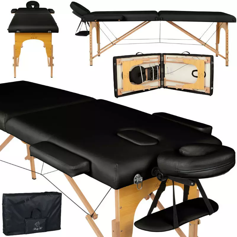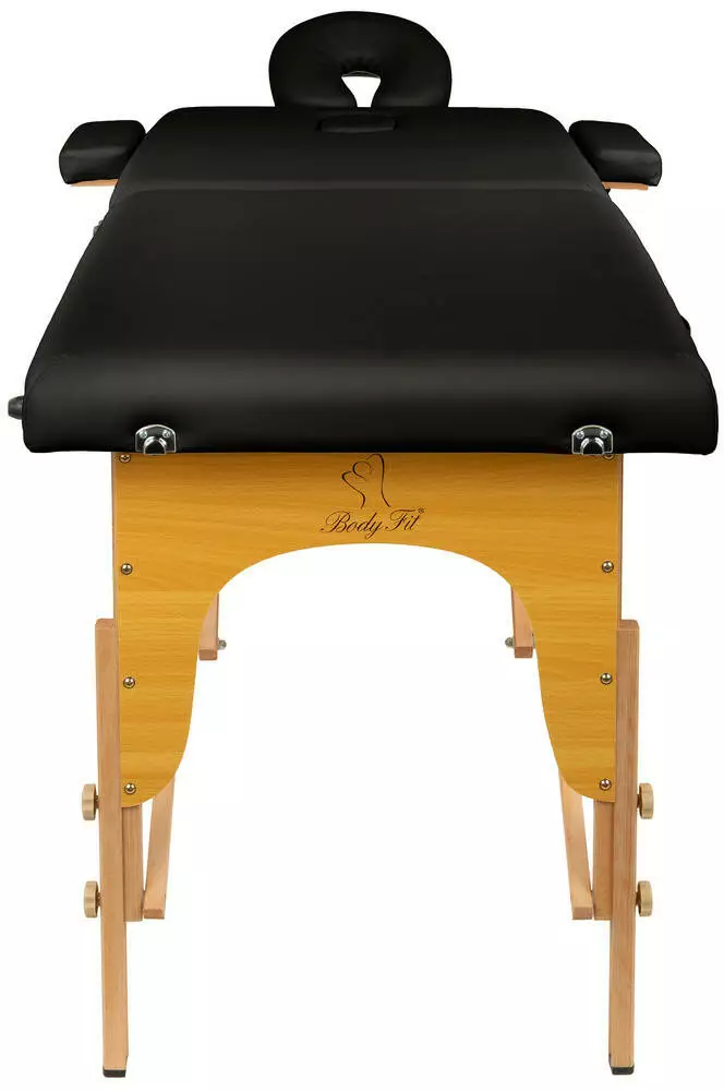 Масажний стіл BodyFit 2-секційний 60см дерев'яний, складний, з аксесуарами, кушетка - Польща Чорний