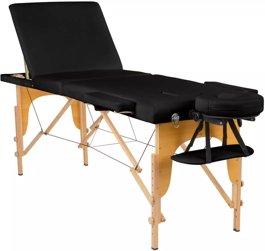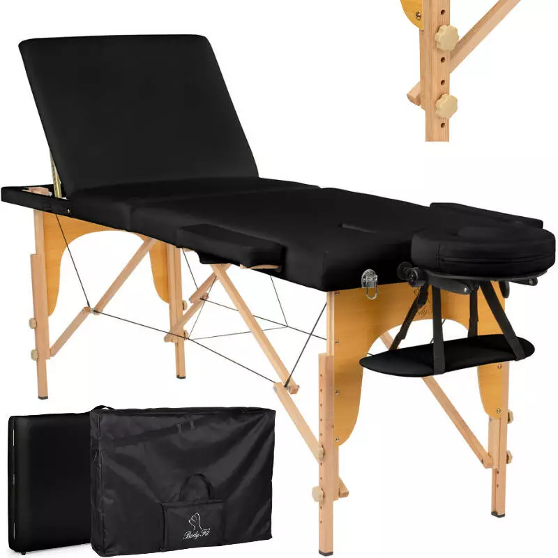 Масажний стіл BodyFit 3-секційний дерев'яний, складний Чорний