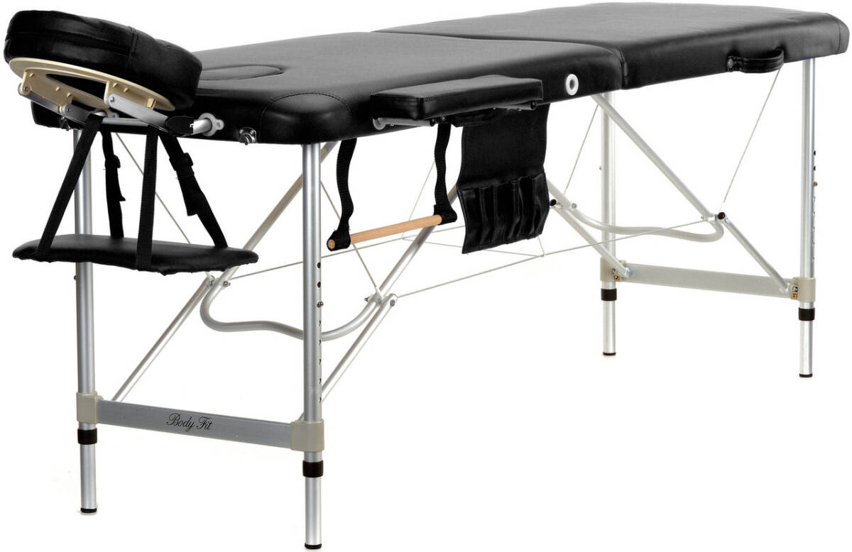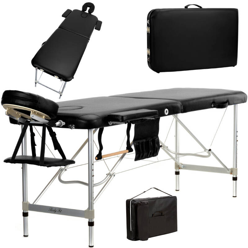 Масажний стіл BodyFit 2-секційний алюмінієвий, складний, переносний Чорний