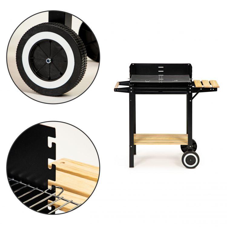Гриль оснащений колесами і ручкою з дерев'яною ручкою, тому навіть коли він розігріється, ви можете легко перемістити його в зручне місце.