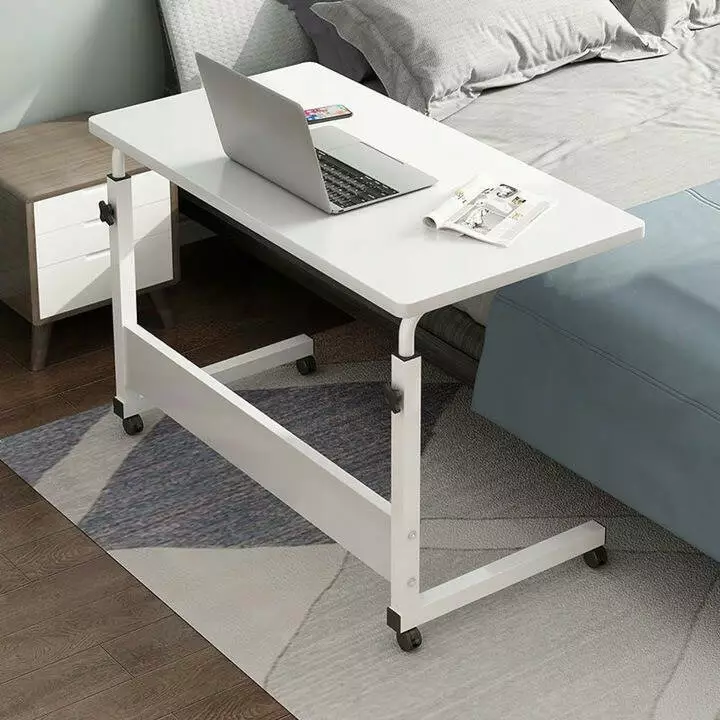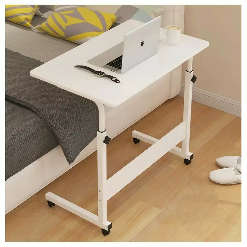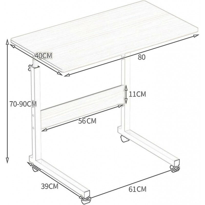 Мобільний стіл 80×40см, регулювання висоти, на колесах, білий приліжковий столик для ноутбука STL03WZ2