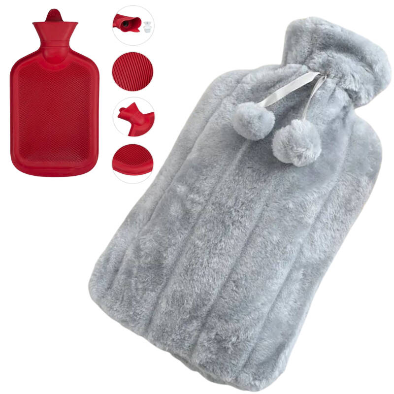 М'яка грілка гумова у плюшевому чохлі 2 л сіра Sternhoff