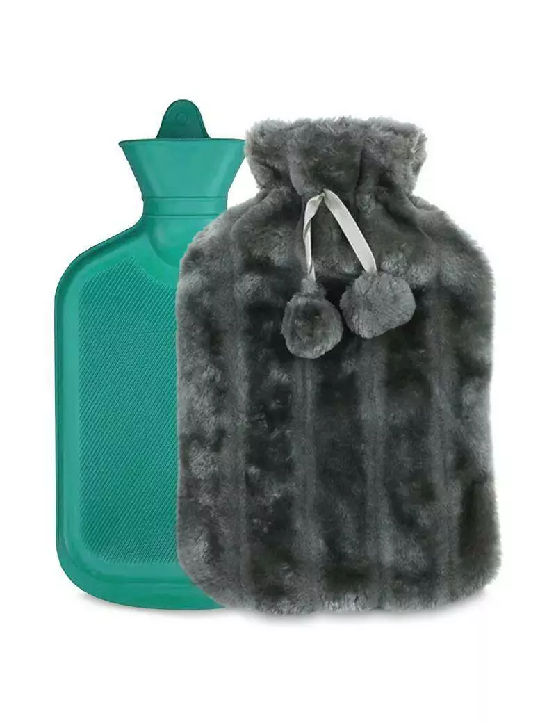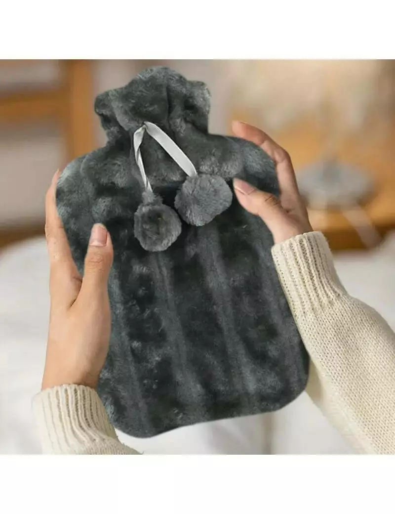 М'яка грілка гумова у плюшевому чохлі 2 л темно-сіра Sternhoff
