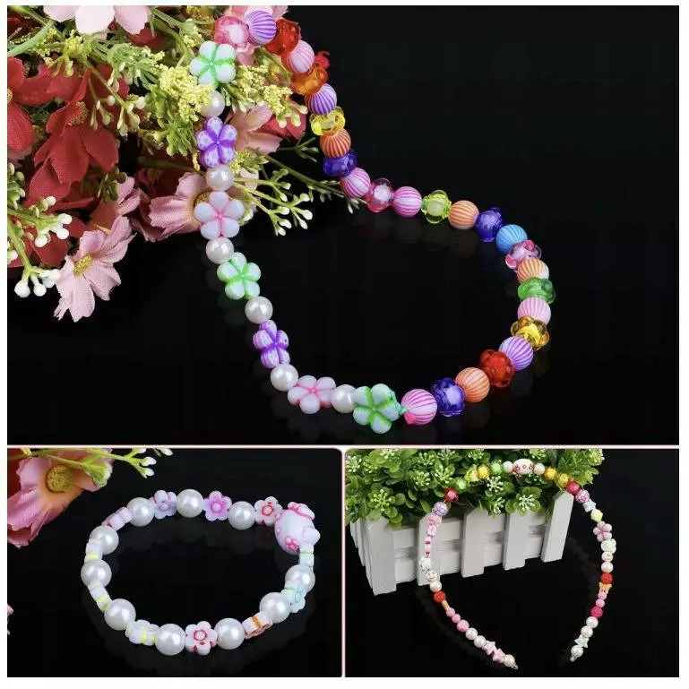 Набір для виготовлення прикрас: Унікальний набір, який дозволить дитині створювати казково барвисті браслети, намиста та пов'язки різних форм і кольорів. У комплекті 30 видів намистин, волосінь, шнурок та застібки.