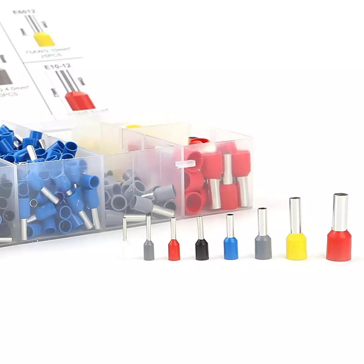 Комплексний набір ізольованих гільз – ідеальне рішення для професіоналів та домашніх майстрів. Завдяки високій якості матеріалів і різноманіттю розмірів набір дозволяє швидко та точно зачищати та обжимати дроти різного перерізу.