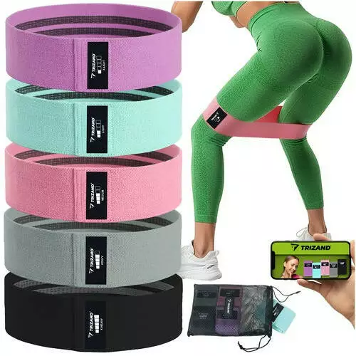Набір тканинних резинок для вправ, для фітнесу - 5 шт Trizand опір 5–35 кг + план тренувань по QR