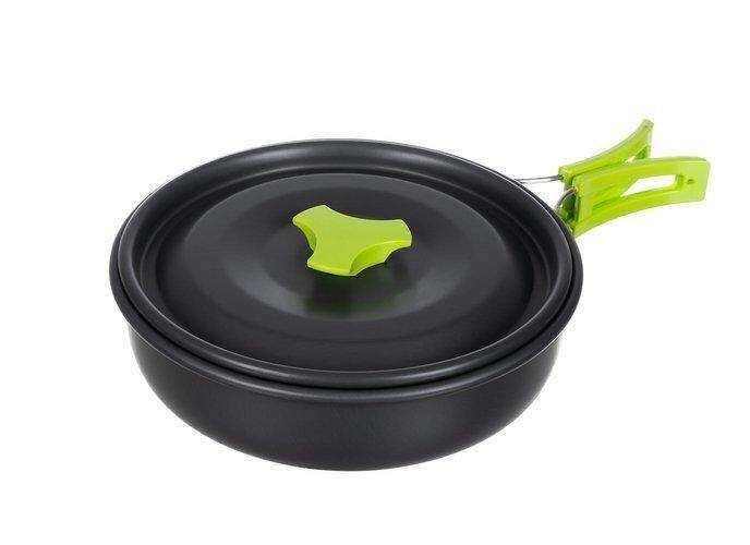 Ручки посуду складні, що дозволяє зручне зберігання набору. Набір Cooking Set DS-308 буде незамінним помічником на рибалці, відпочинку чи роботі.