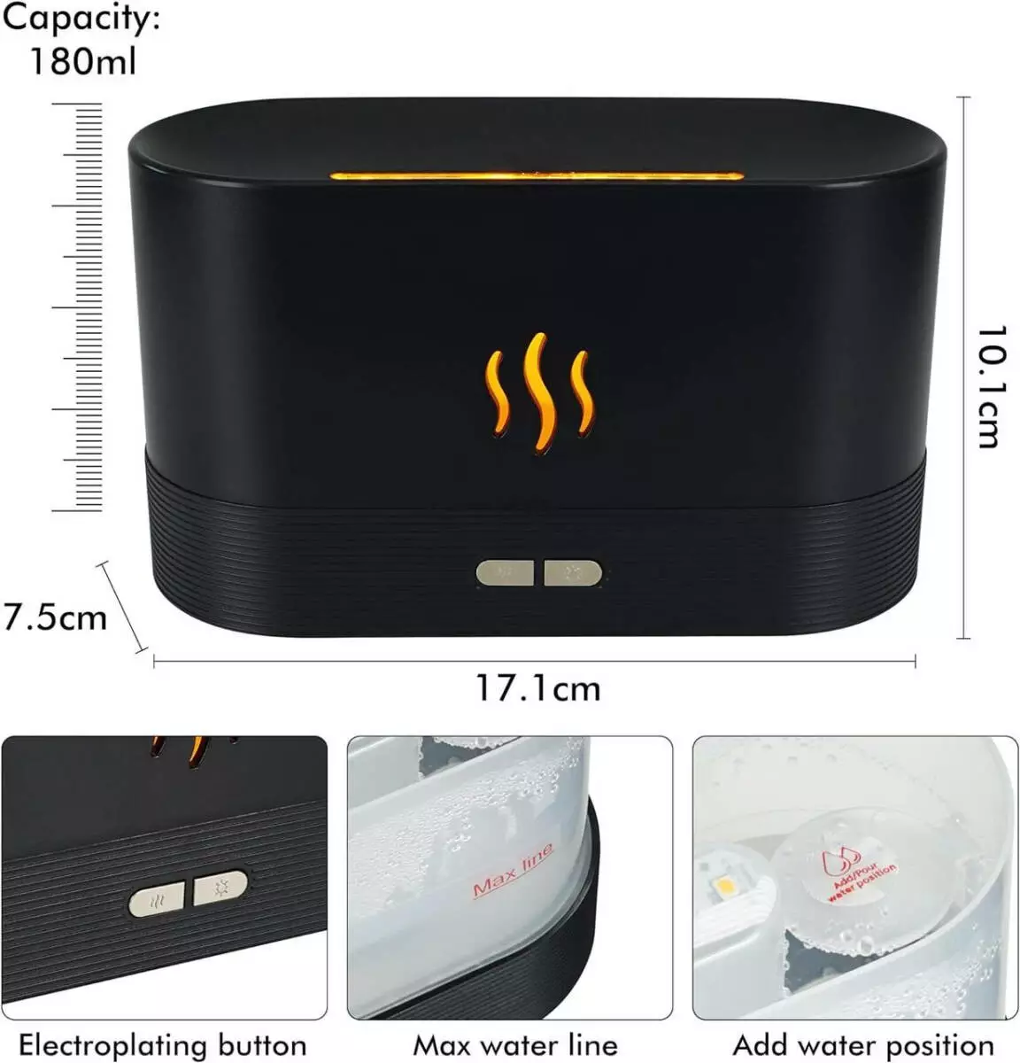 Нічник зволожувач повітря з імітацією полум'я й резервуаром для ефірної олії аромадифузор 180 мл Ruhhy 22542