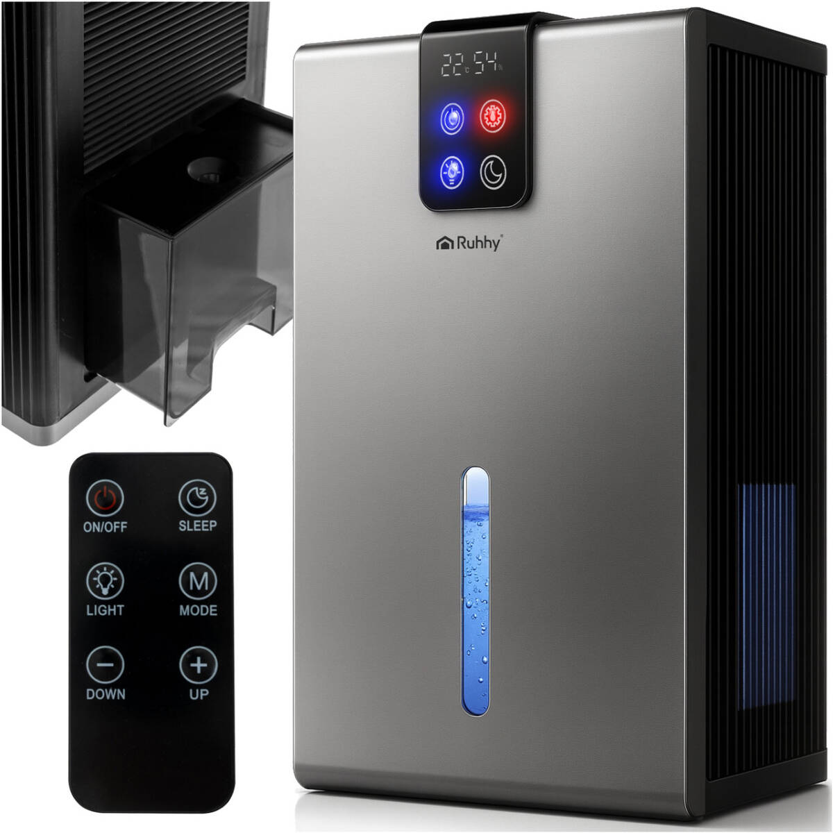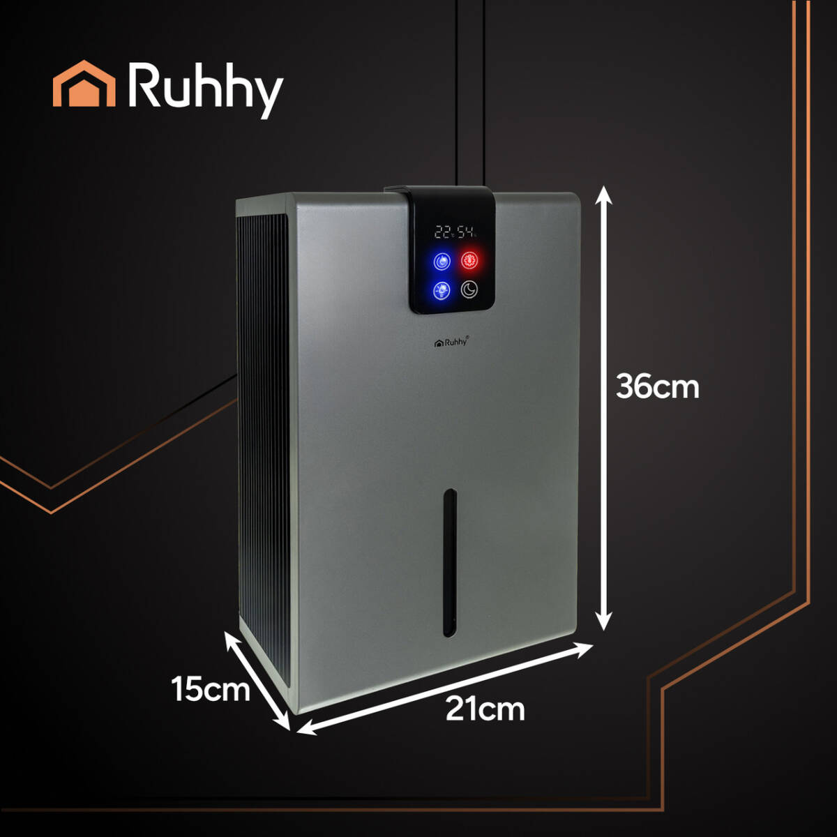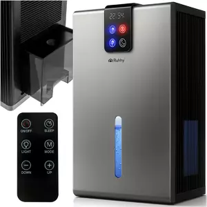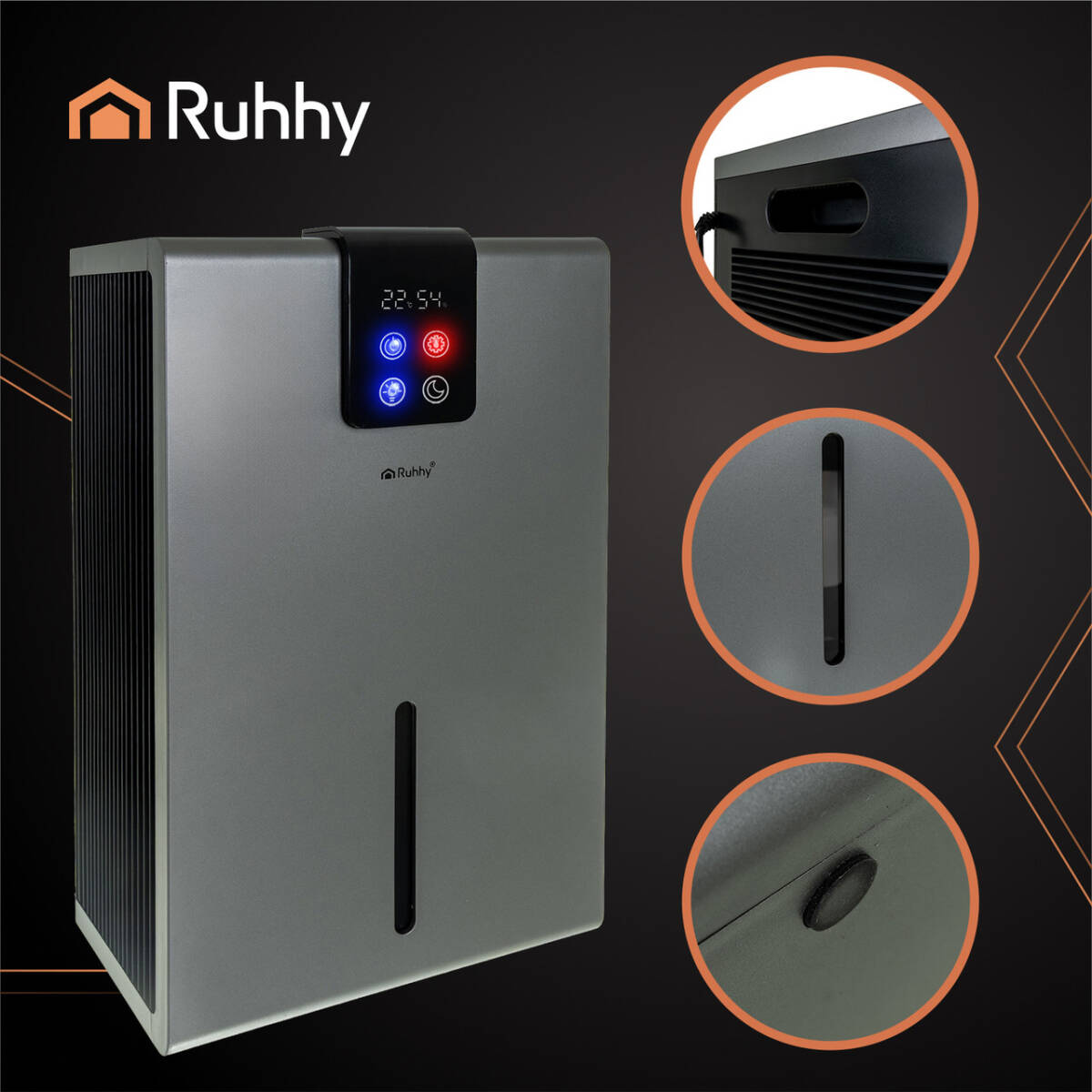 Осушувач повітря RUHHY – сучасне рішення для боротьби з надмірною вологістю у квартирі чи будинку. Завдяки технології Peltiera він працює тихо й ефективно, запобігає появі плісняви, грибка та неприємних запахів. Зручне керування дотиком або пультом, вбудований гігрометр і LED-підсвітка роблять його практичним і стильним аксесуаром для будь-якого інтер’єру.
