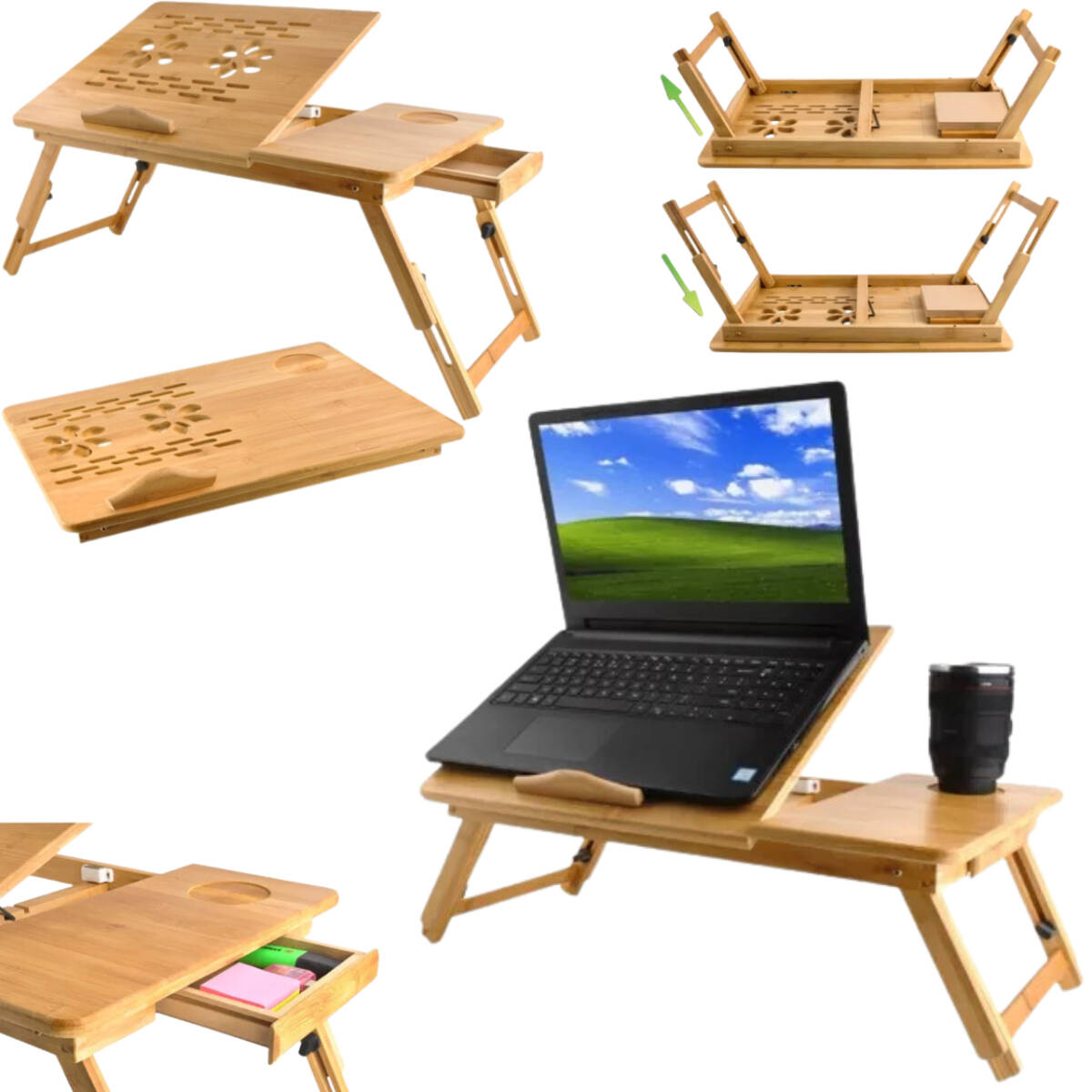 Зручний і практичний стіл для ноутбука з вентиляцією - це аксесуар, який оцінить кожен, хто любить працювати за комп'ютером в зручній, невимушеній позі. На жаль, використання ноутбука в ліжку або на дивані часто передбачає тримання його на колінах, що не тільки незручно, але й може призвести до перегріву пристрою. Бамбуковий столик для ноутбука чудово підійде як у ліжку, так і на дивані, а також у літаку, поїзді та автобусі. Завдяки отворам у стільниці ви легко можете накритися улюбленою ковдрою і поставити комп'ютер або планшет на вентильований столик для ноутбука - він точно не перегріється. Отвори в стільниці розсіюють тепло, завдяки чому батарея комп’ютера працюватиме довше.