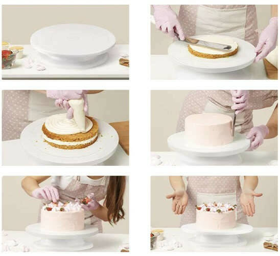 може легко прикрасити торт, повернувши підставку. Крім того, можна