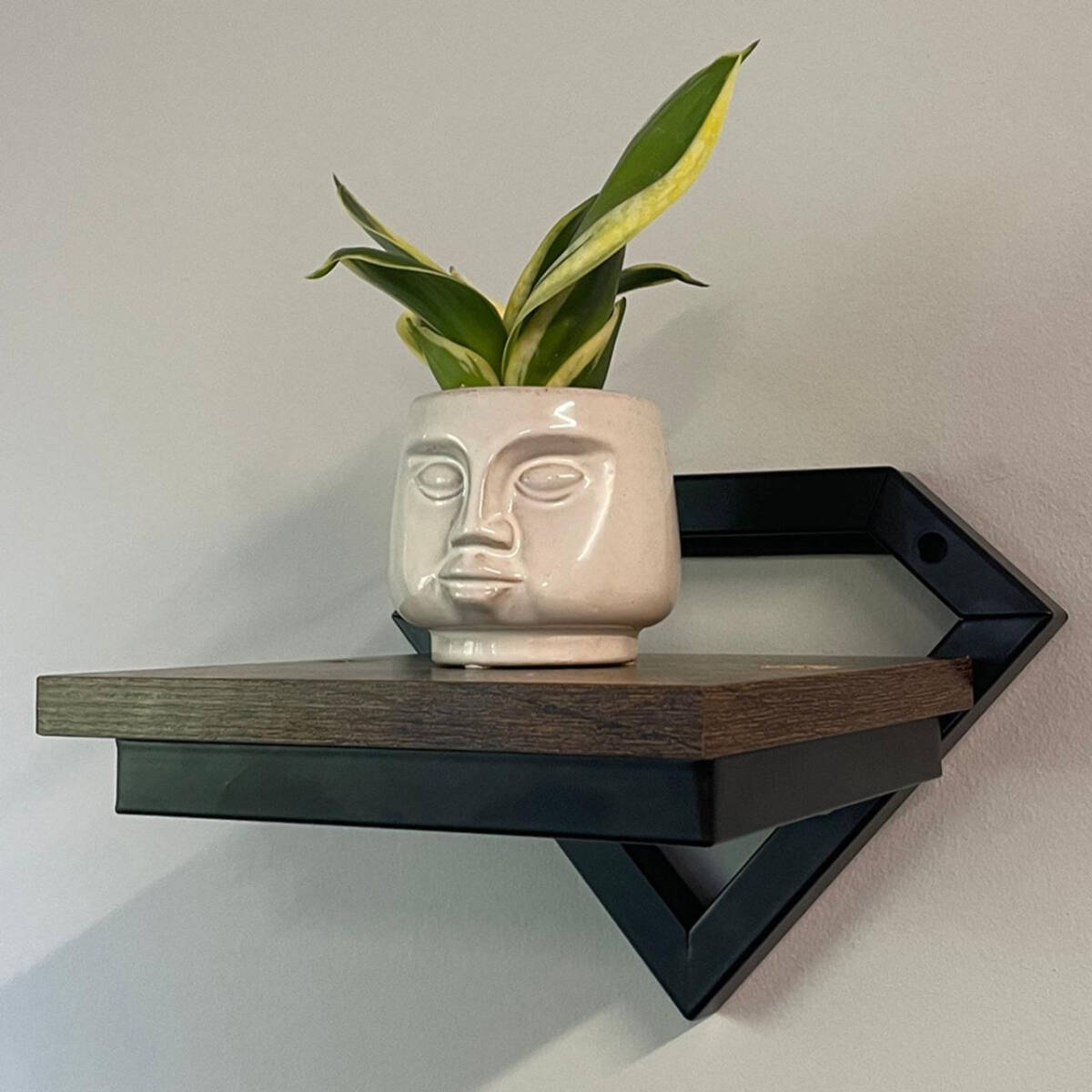 Підвісна настінна полиця для квітів RUHHY в стилі лофт, чорна металева рамка, МДФ полиця