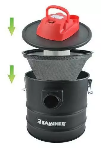 Зольний пилосос ODK009-18L Kaminer дає змогу видаляти холодну золу з камінів, барбекю та інших вогнищ. Пилосос також може працювати як повітродувка, якщо під'єднати трубу до верхнього отвору. Завдяки двигуну потужністю 1200 Вт, пилосос гарантує високу ефективність при видаленні бруду. Правильна робота пилососа, включно з двигуном, контролюється подвійною системою фільтрації. Відходи збираються в бак із неіржавкої сталі, який стійкий до пилу, що збирається від згоряння.