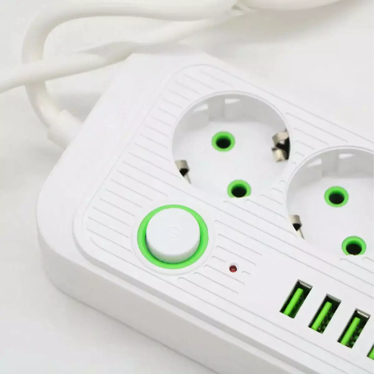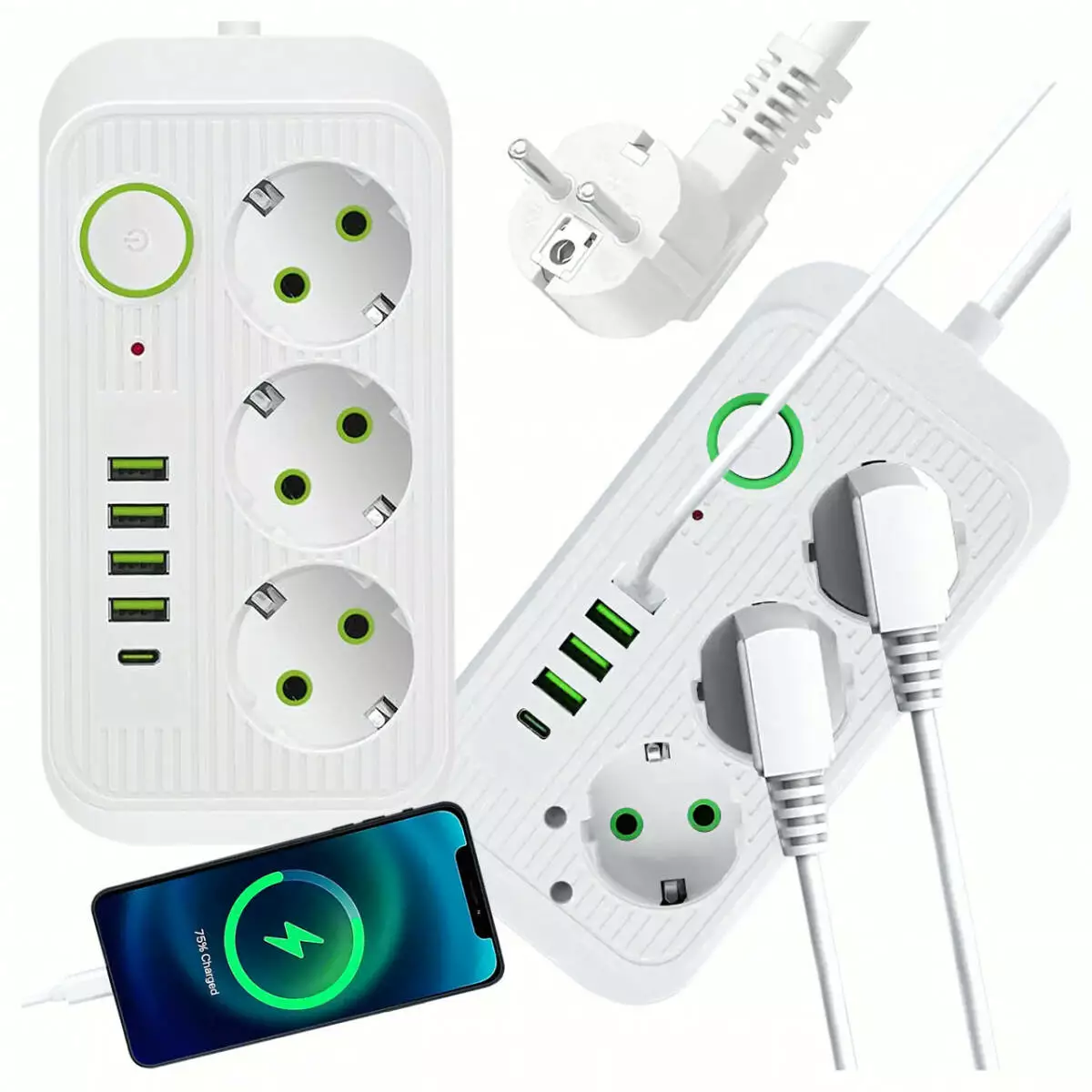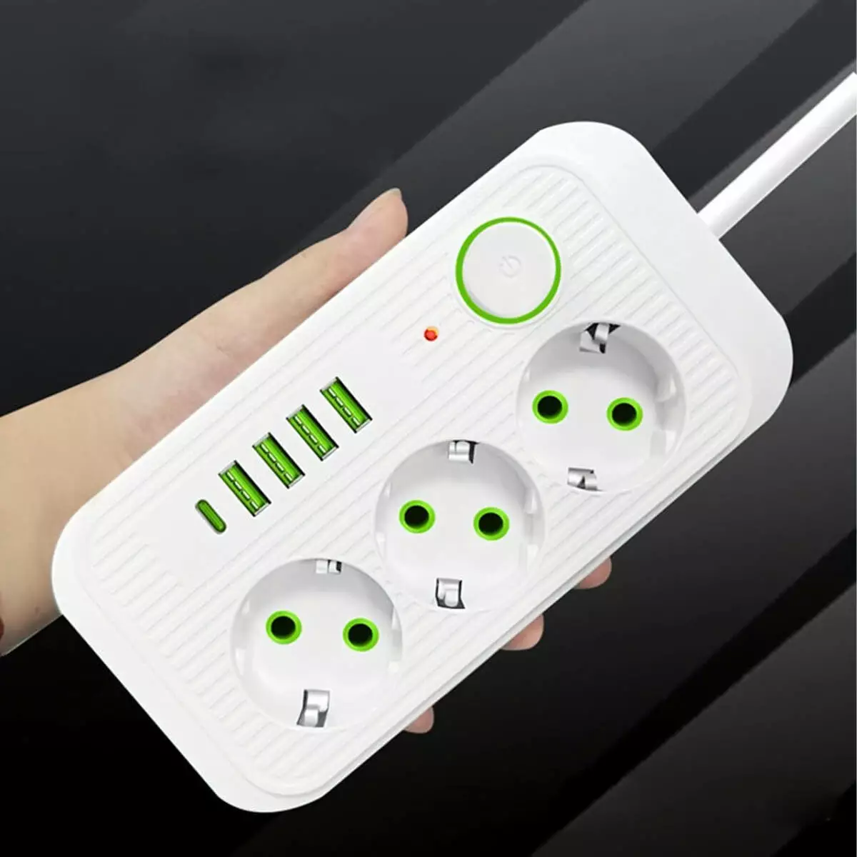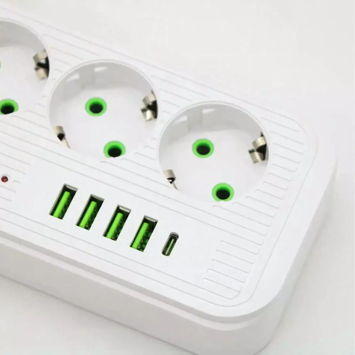 Мережевий фільтр-подовжувач – це зручне та багатофункціональне рішення для живлення і заряджання одночасно кількох пристроїв у домі, офісі чи під час подорожей. Оснащений трьома стандартними розетками 250V та п’ятьма USB-портами (включно з USB-C), він дозволяє оптимізувати простір та уникнути безладу з кабелями.