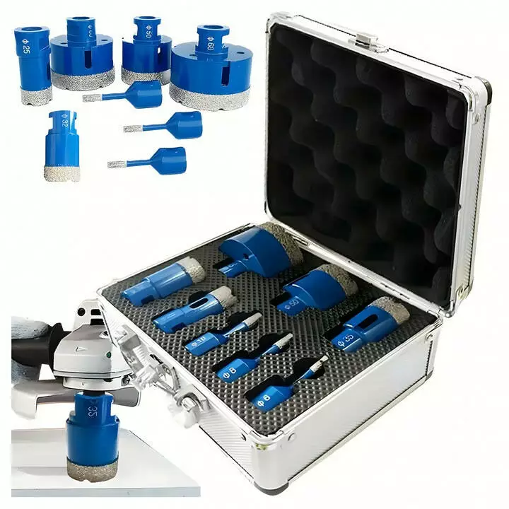 Професійний набір діамантових коронок – ідеальне рішення для свердління плитки, граніту, мармуру, бетону та інших твердих матеріалів. Завдяки високій якості матеріалів набір забезпечує тривалий термін служби та точність роботи.