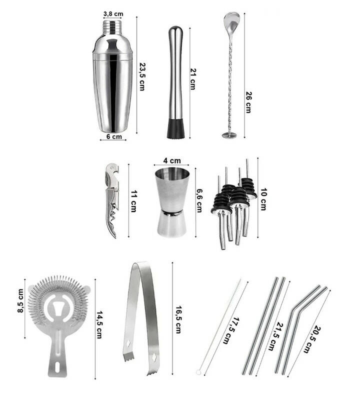 - Набір бармена складається з 17 елементів, які допоможуть вам створити чудовий напій.