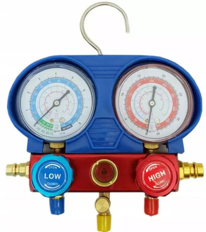 - Два манометра: для низкого и высокого давления, с температурной шкалой.