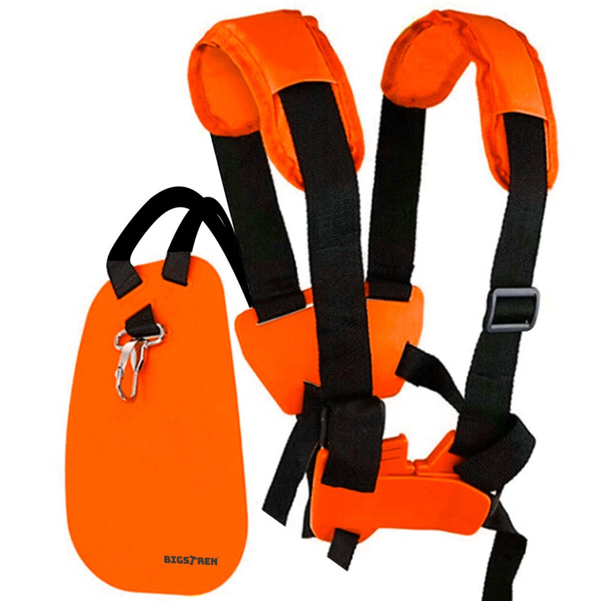 Ремінь для мотокоси RUHHY, регульований, з м'якими накладками, чорний/помаранчевий